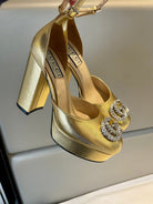 platform pump 12cm with double g gold metalic patent leather