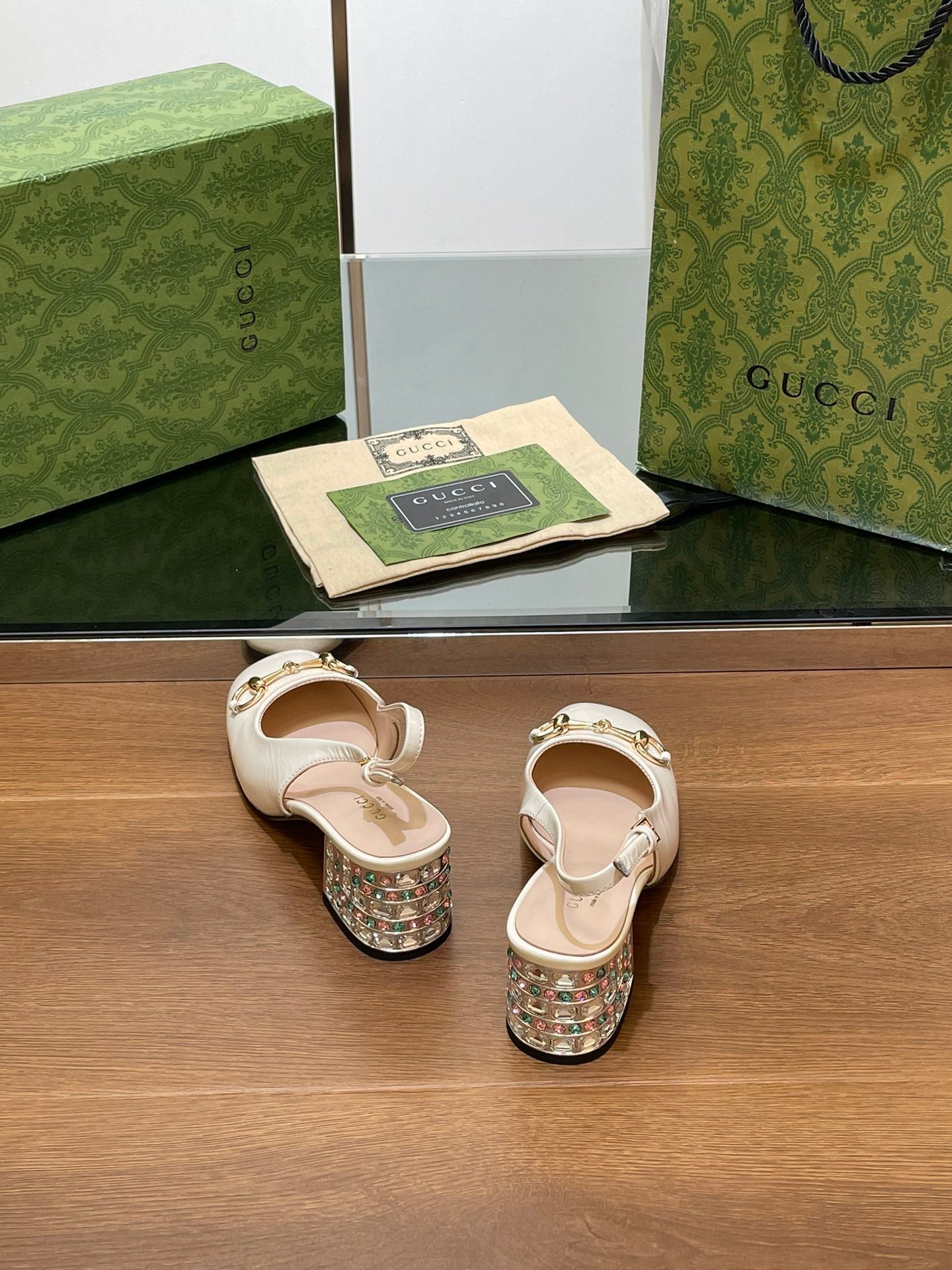 WOMEN'S HORSEBIT SLINGBACK 55MM IN WHITE CALFSKIN WITH RHINSTONES