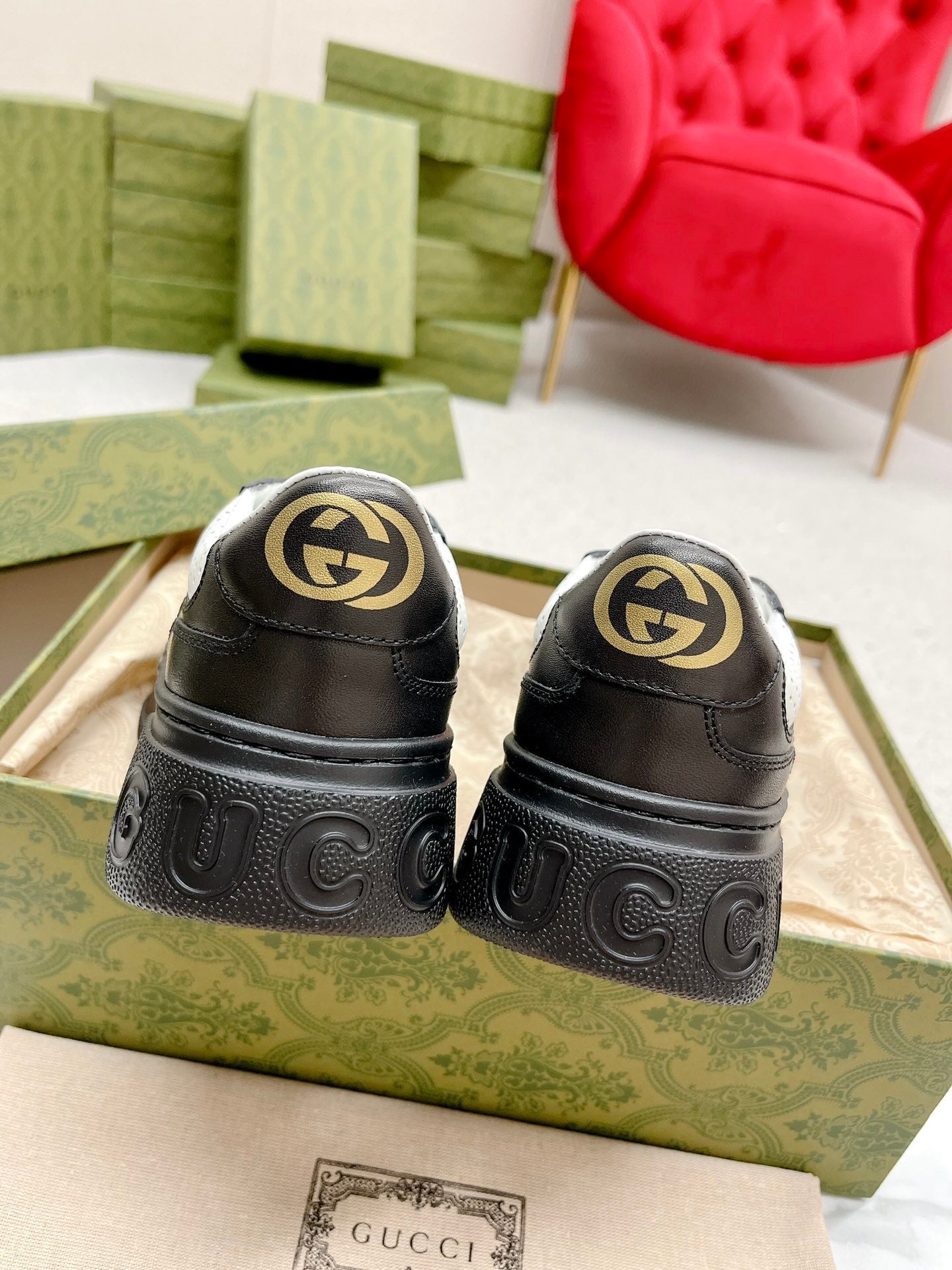 GG EMBOSSED TRAINER BLACK AND WHITE CALFSKIN
