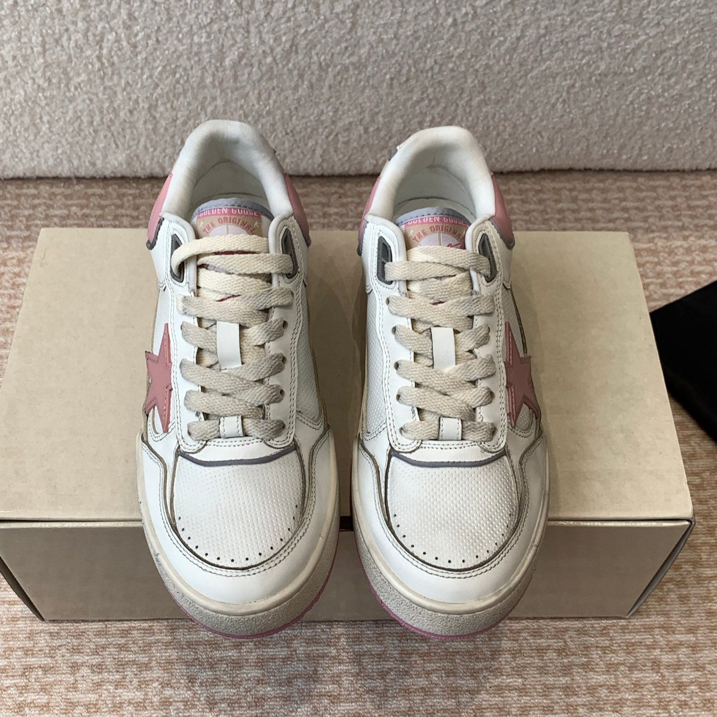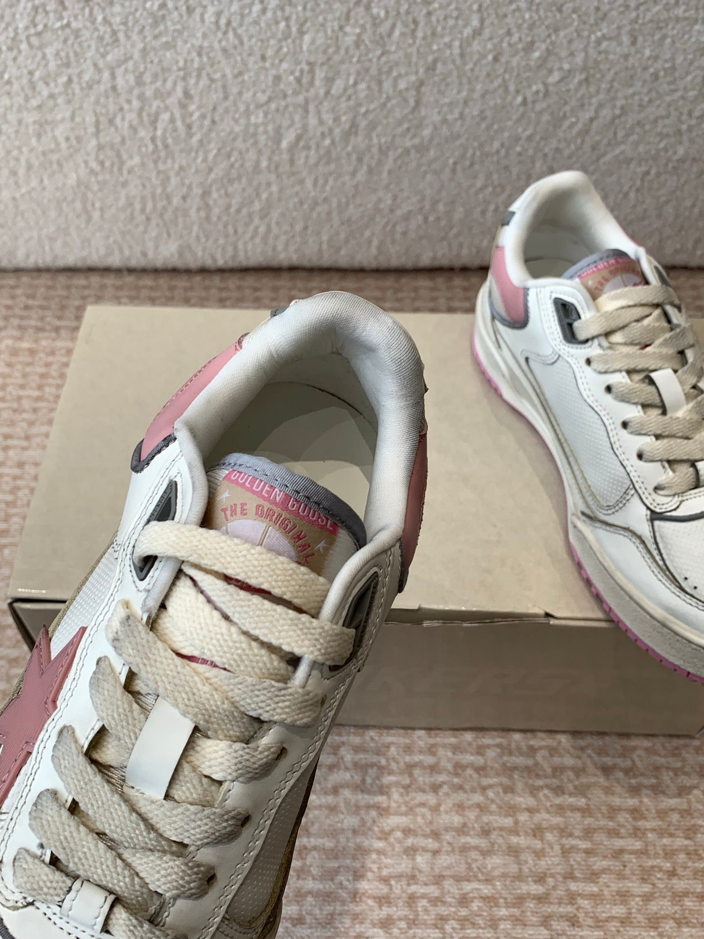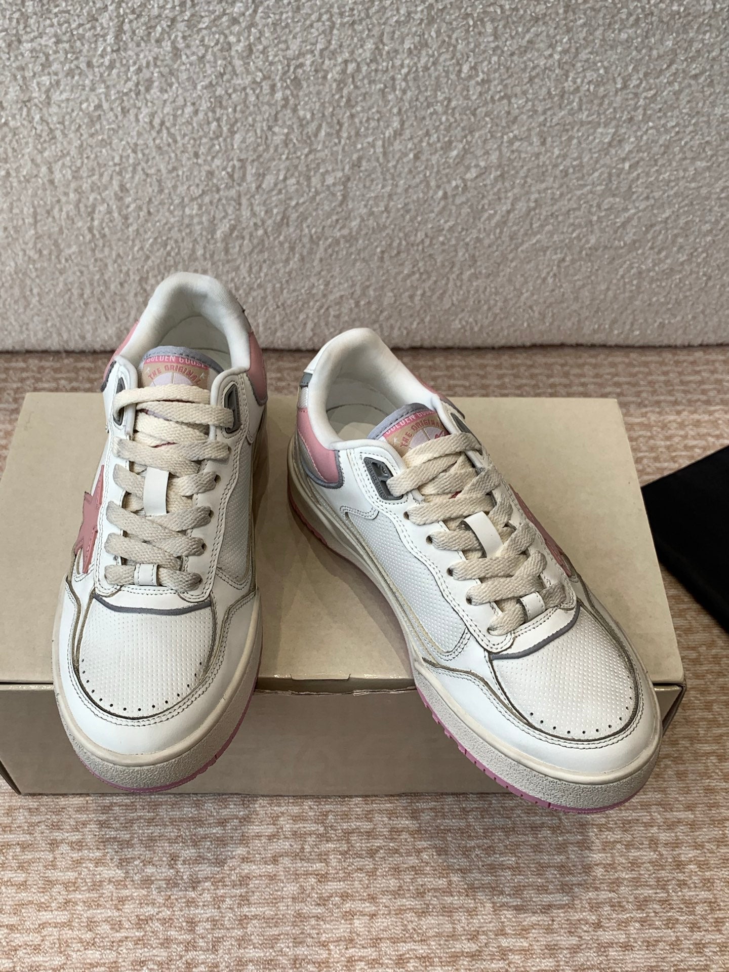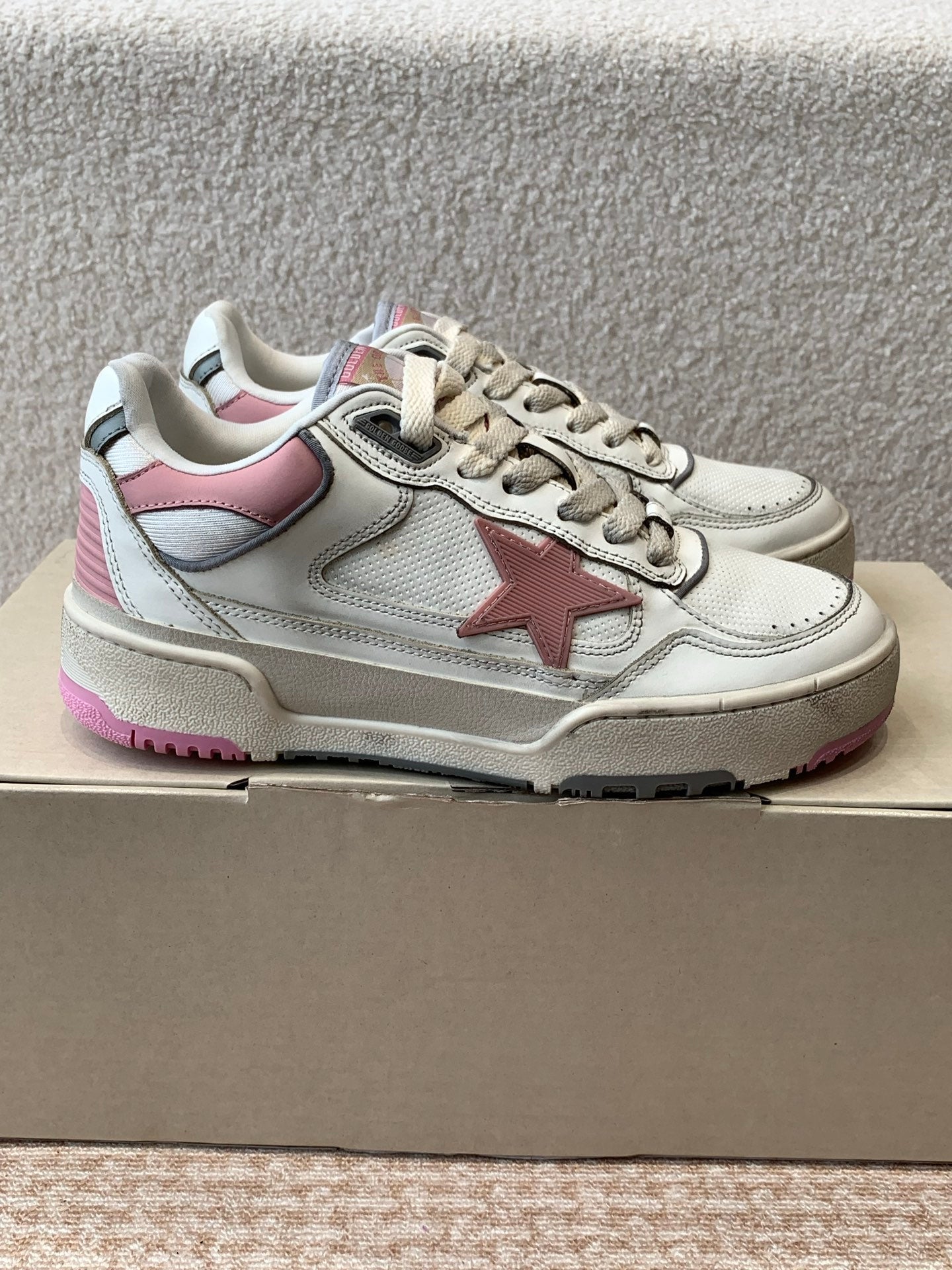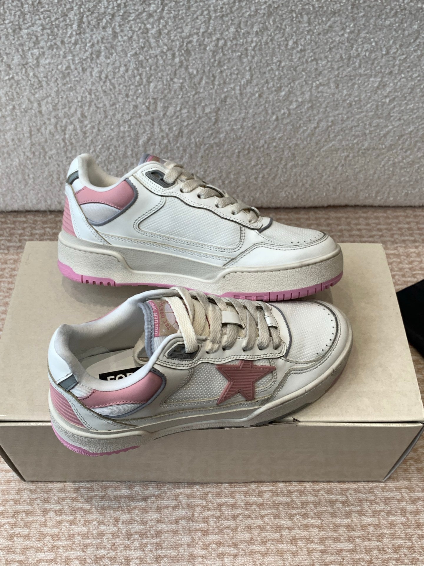 FORTY2 SNEAKERS WITH PINK STAR AND WHITE LEATHER HEEL TAB