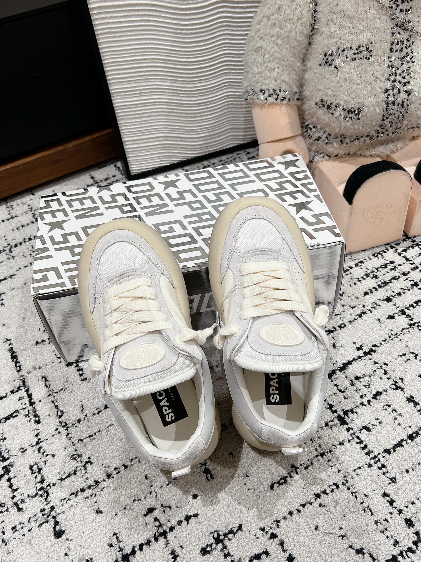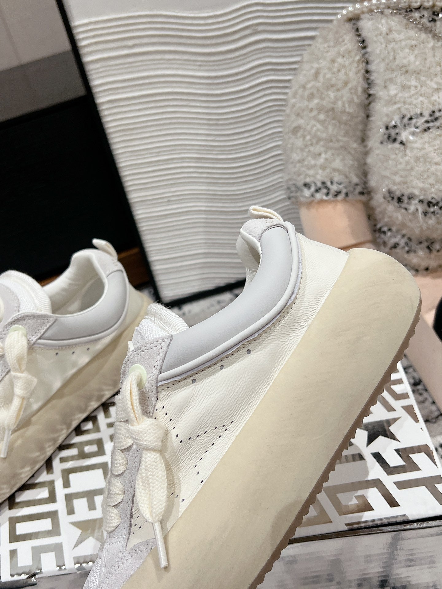 SPACE-STAR CUBE SNEAKERS IN WHITE CALFSKIN MIX CANVAS WITH PERFORATED STAR