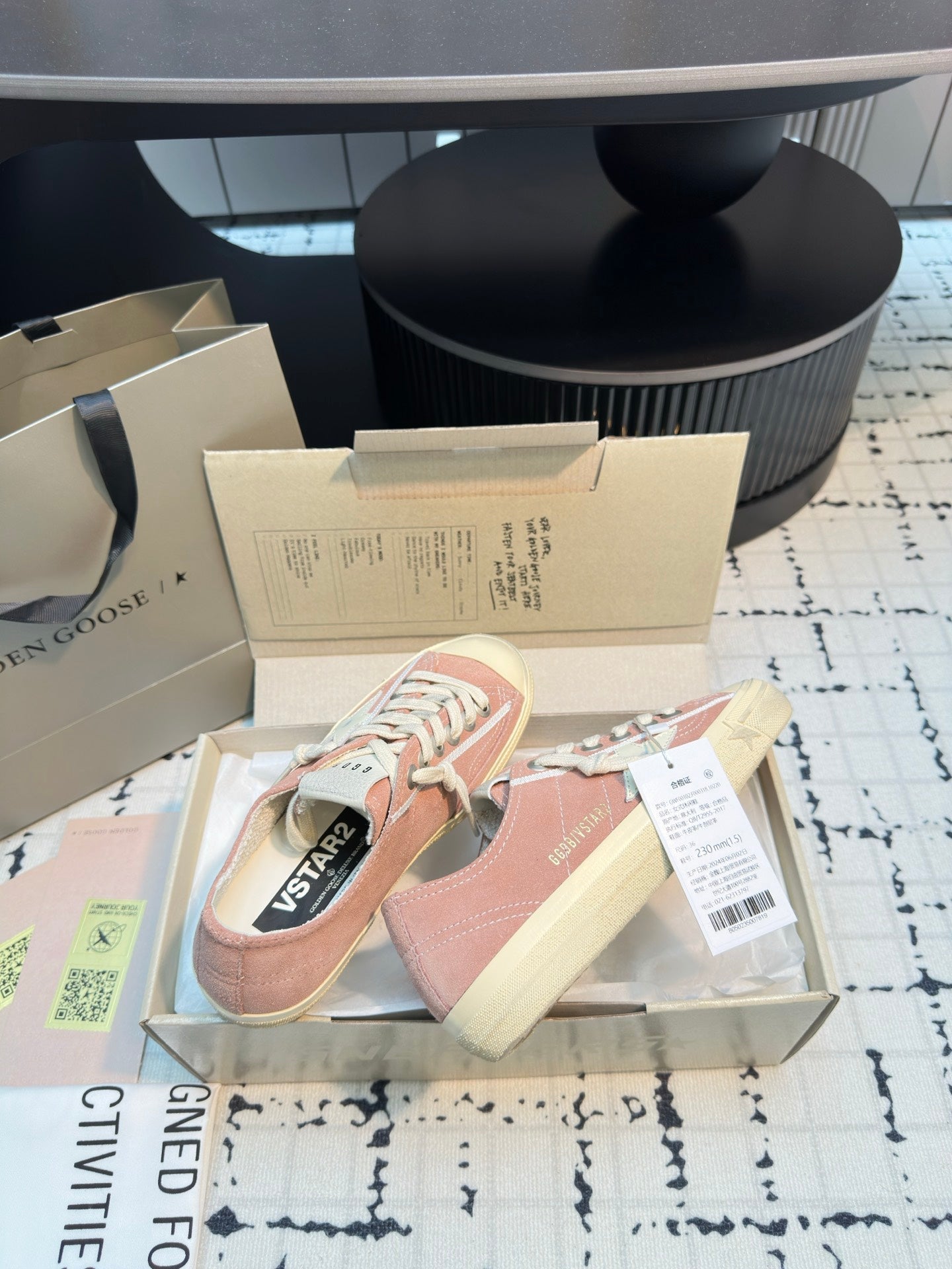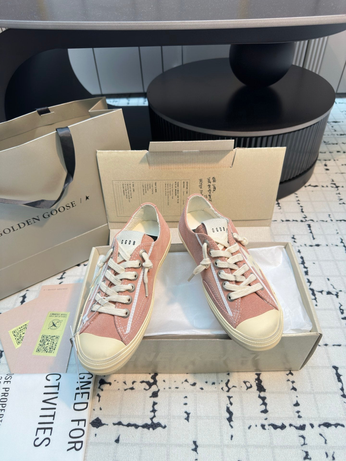 THICK-SOLED V-STAR IN PINK SUEDE WITH CREAM CALFSKIN STAR