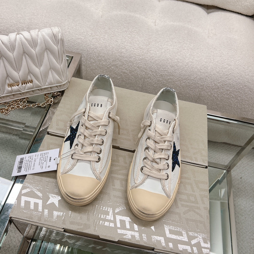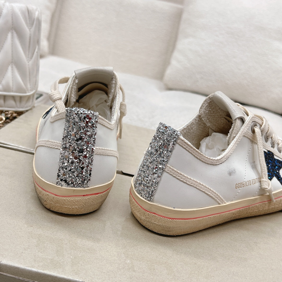 V-STAR SNEAKERS WHITE CALFSKIN WITH BLACK GLITTER STAR