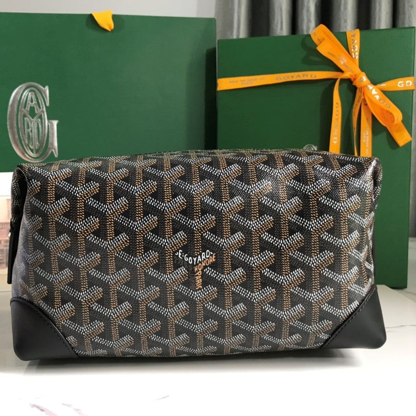 Goyard Bowling 25 Toiletry Bag Black Canvas & Calfskin