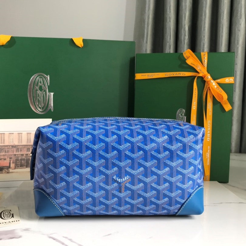Goyard Bowling 25 Toiletry Bag Blue Canvas & Calfskin