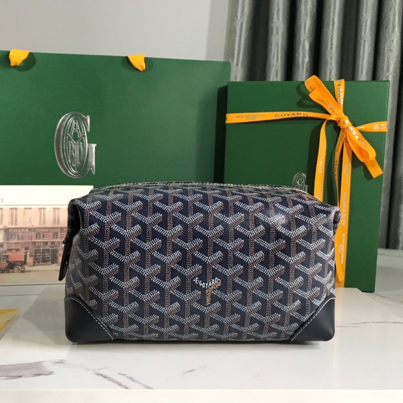Goyard Bowling 25 Toiletry Bag Navy Blue Canvas & Calfskin