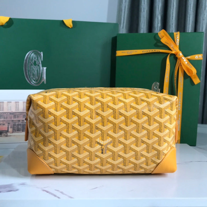 Goyard Bowling 25 Toiletry Bag Yellow Canvas & Calfskin