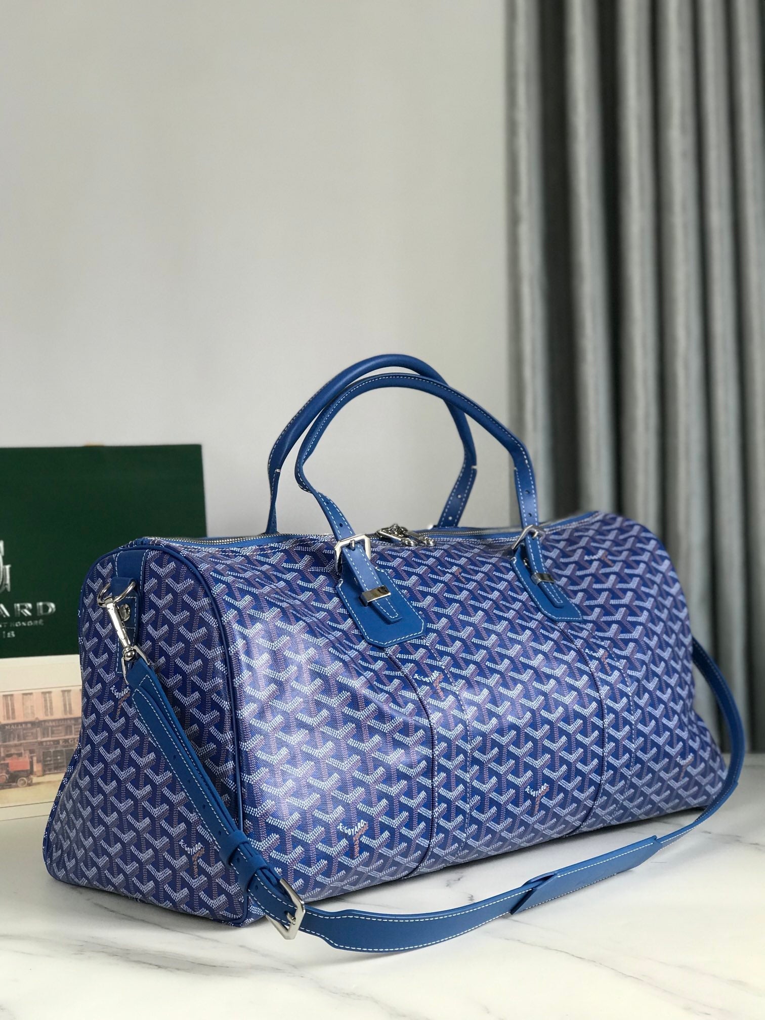 BOSTON 50 BAG IN SAPPHIRE BLUE GOYARDINE CANVAS AND CALFSKIN TRIM