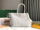 CHIEN GRIS BAG 33 IN WHITE GOYARDINE CANVAS AND TAN CALFSKIN TRIM