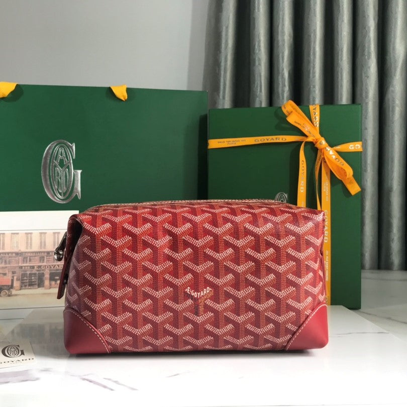 Goyard Bowling 25 Toiletry Bag Red Canvas & Calfskin