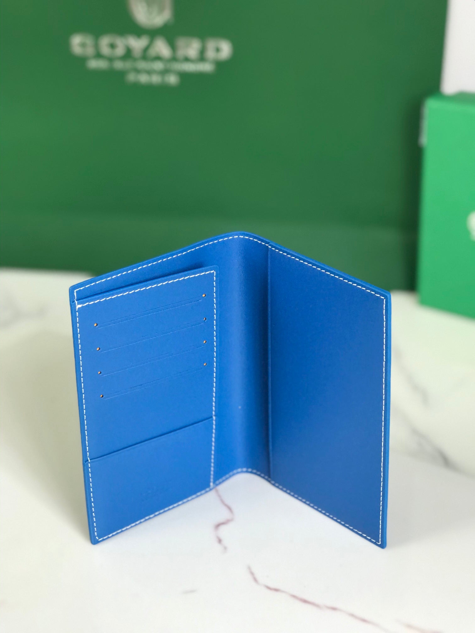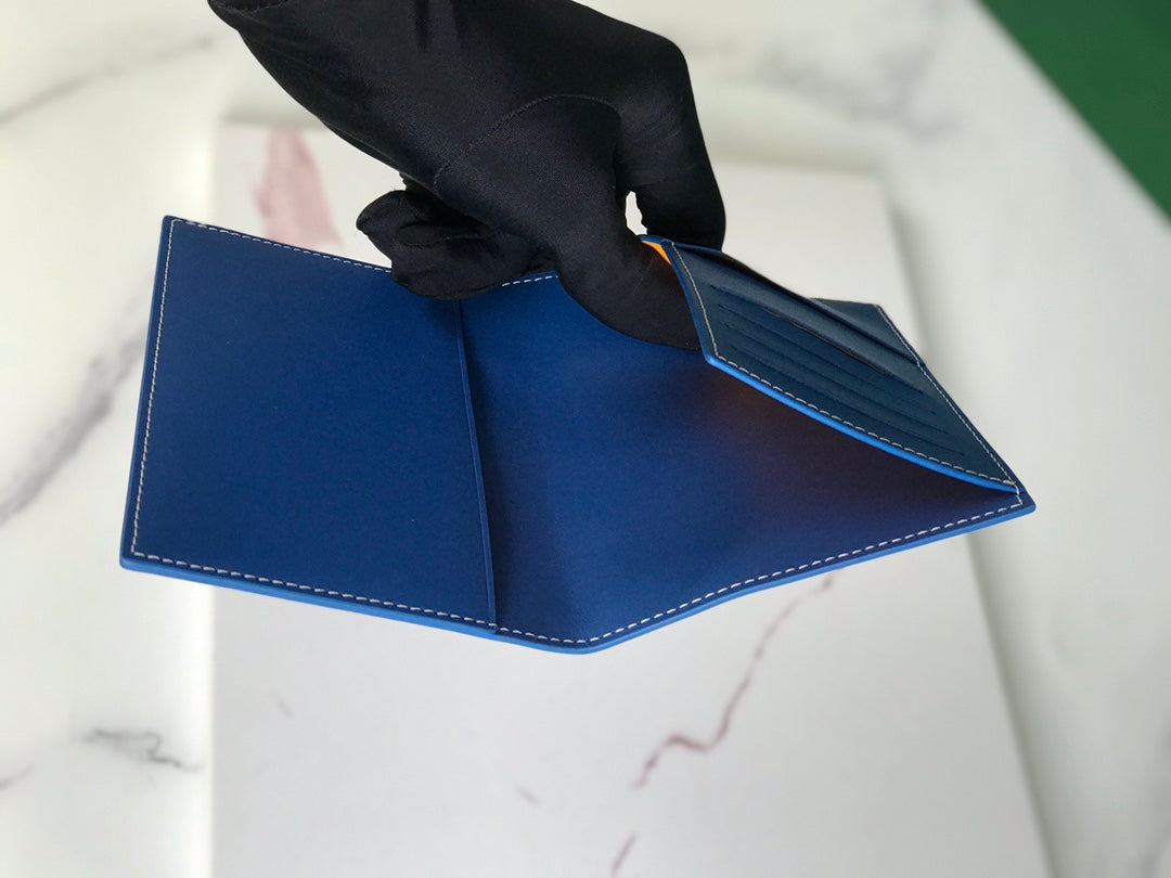 Goyard Grenelle Passport Cover 10cm Blue Canvas & Cafskin