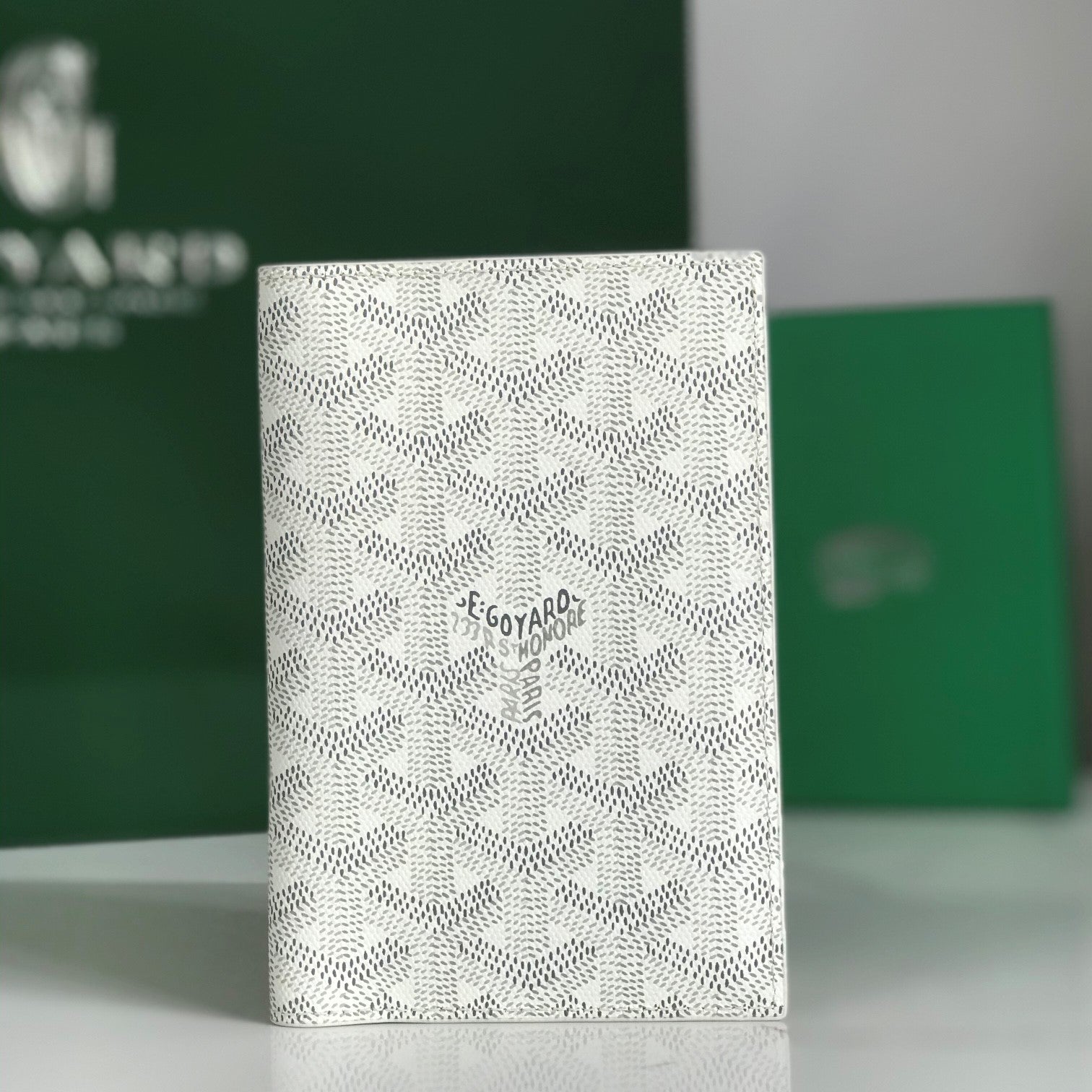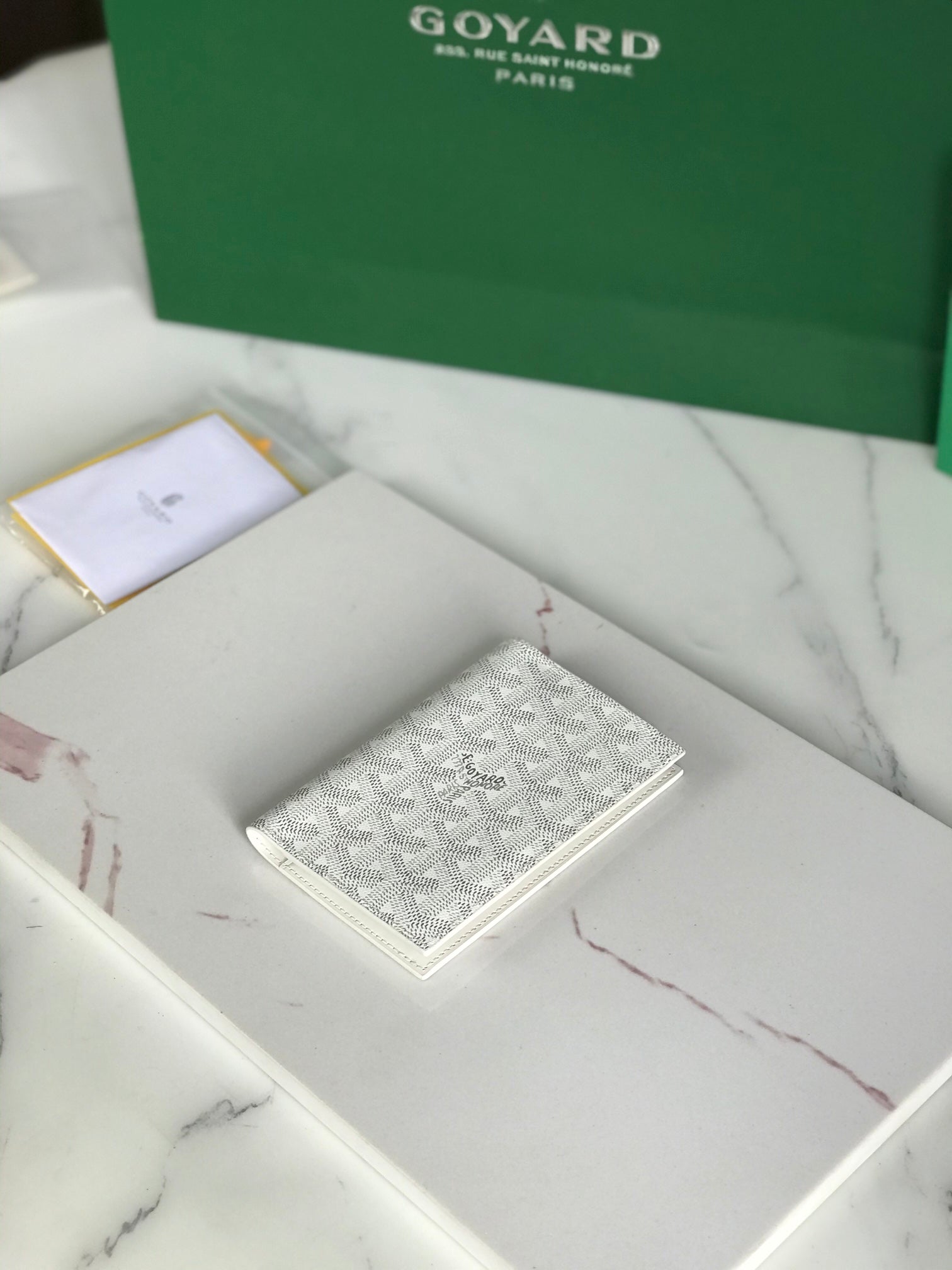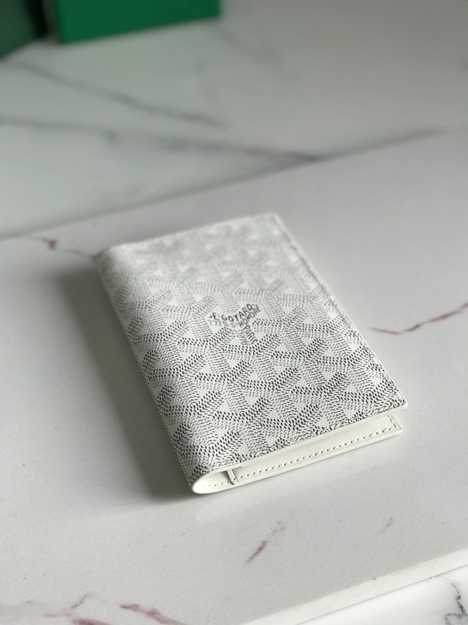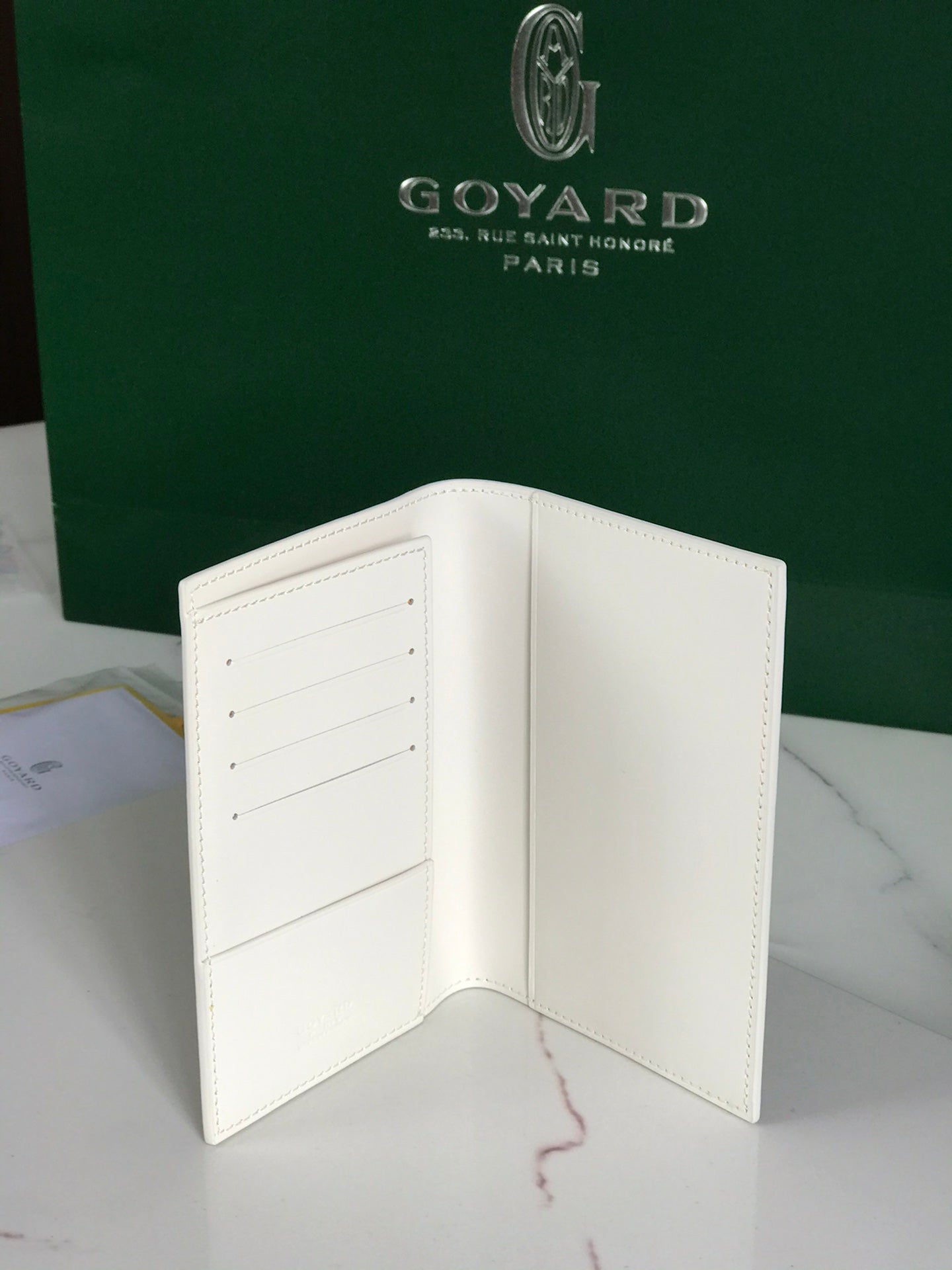 Goyard Grenelle Passport Cover 10cm White Canvas & Cafskin
