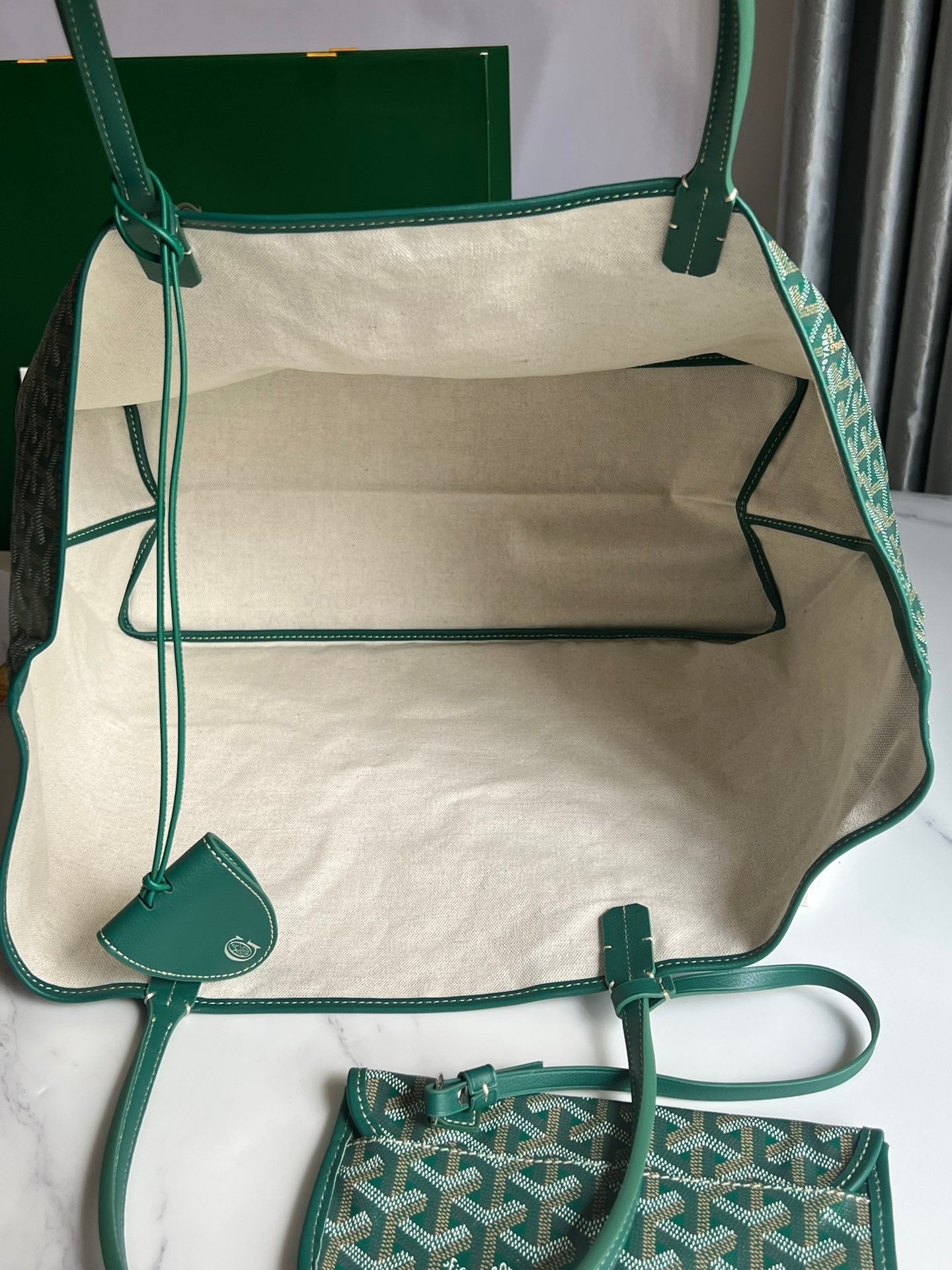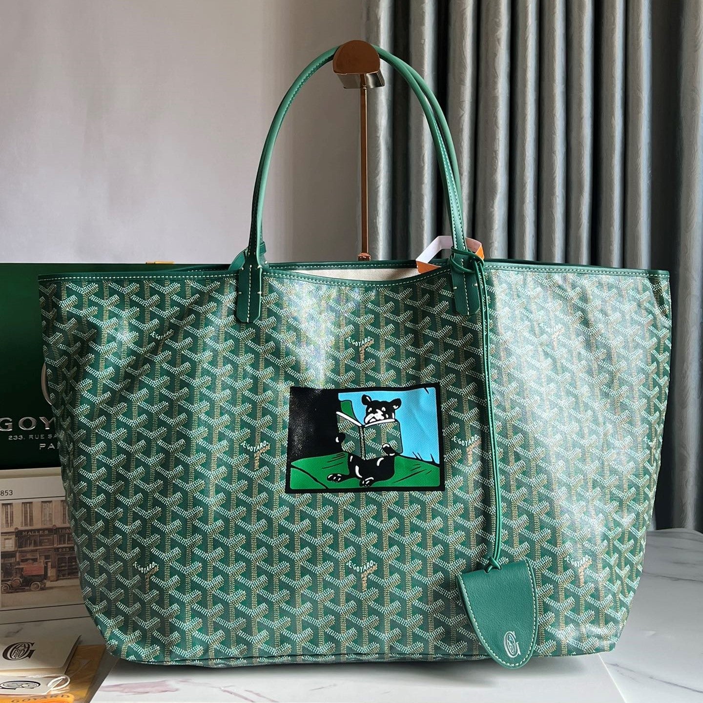 Goyard Hulot Saint Louis PM Bag 39cm Green Canvas & Calfskin