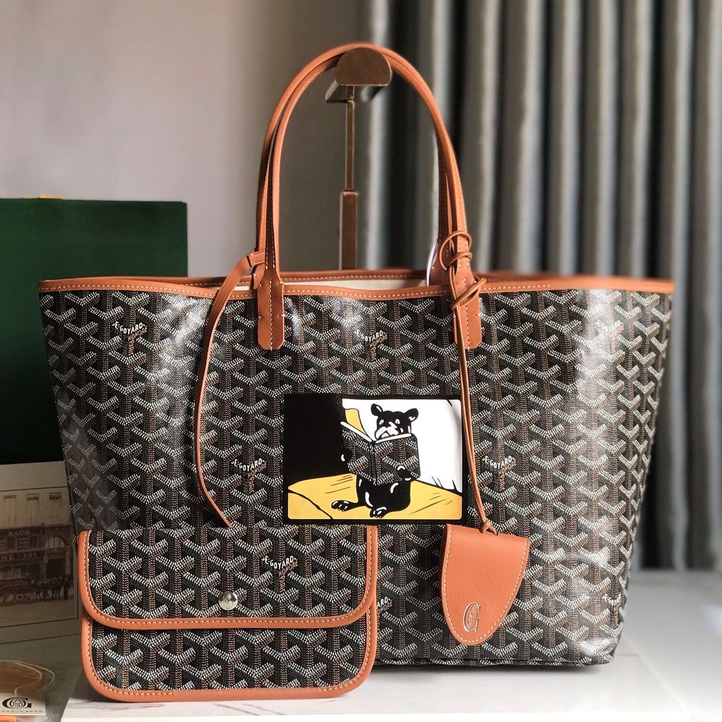 Goyard Hulot Saint Louis PM Bag 34cm Black Tan Canvas & Calfskin