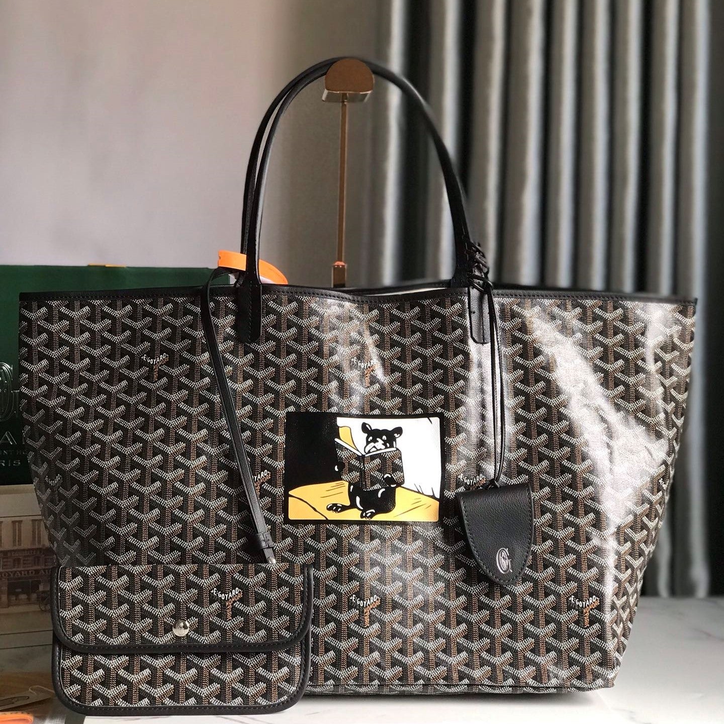 Goyard Hulot Saint Louis PM Bag 39cm Black Canvas & Calfskin