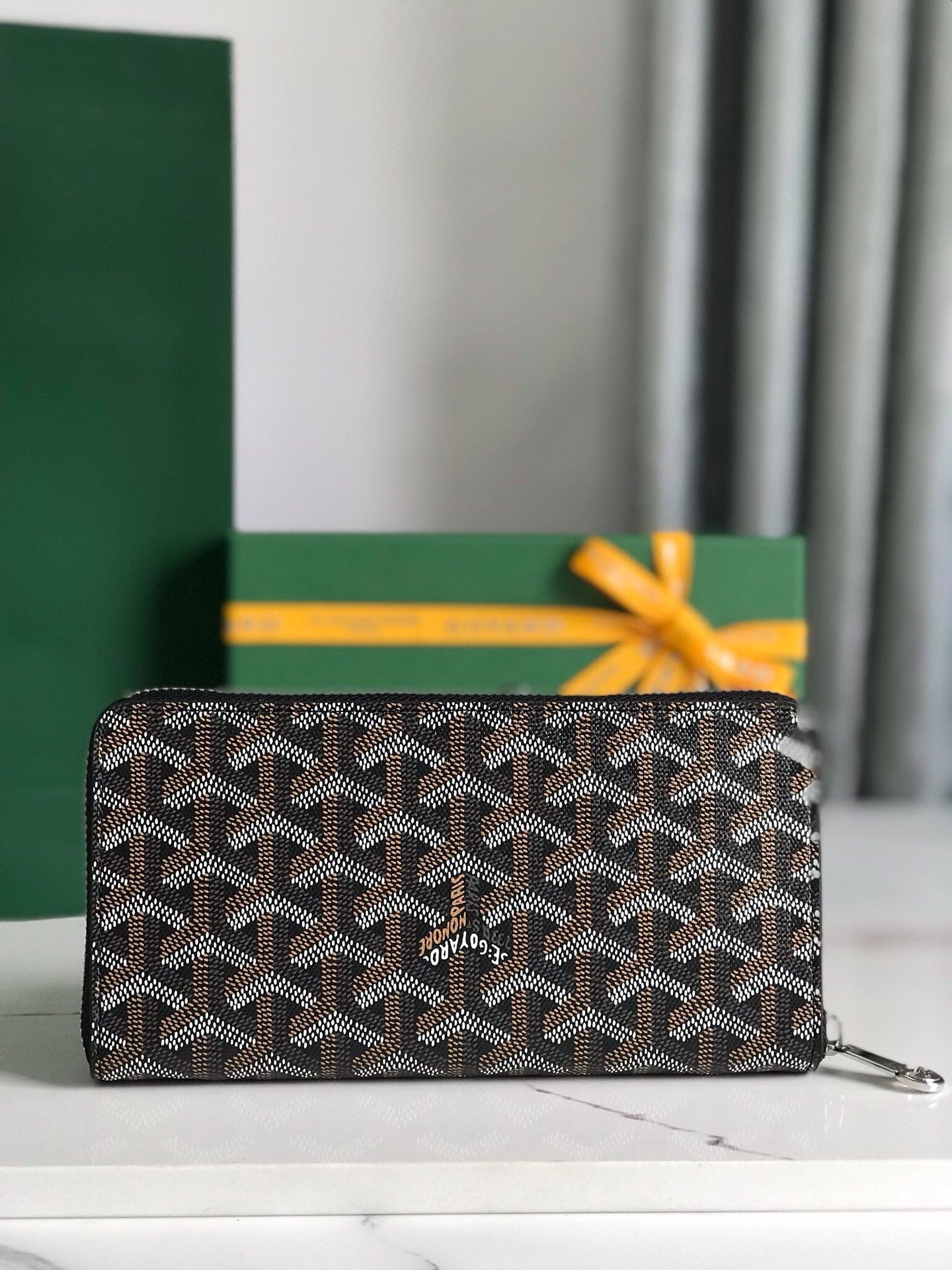 Goyard Matignon GM Wallet 20cm Black Canvas & Calfskin