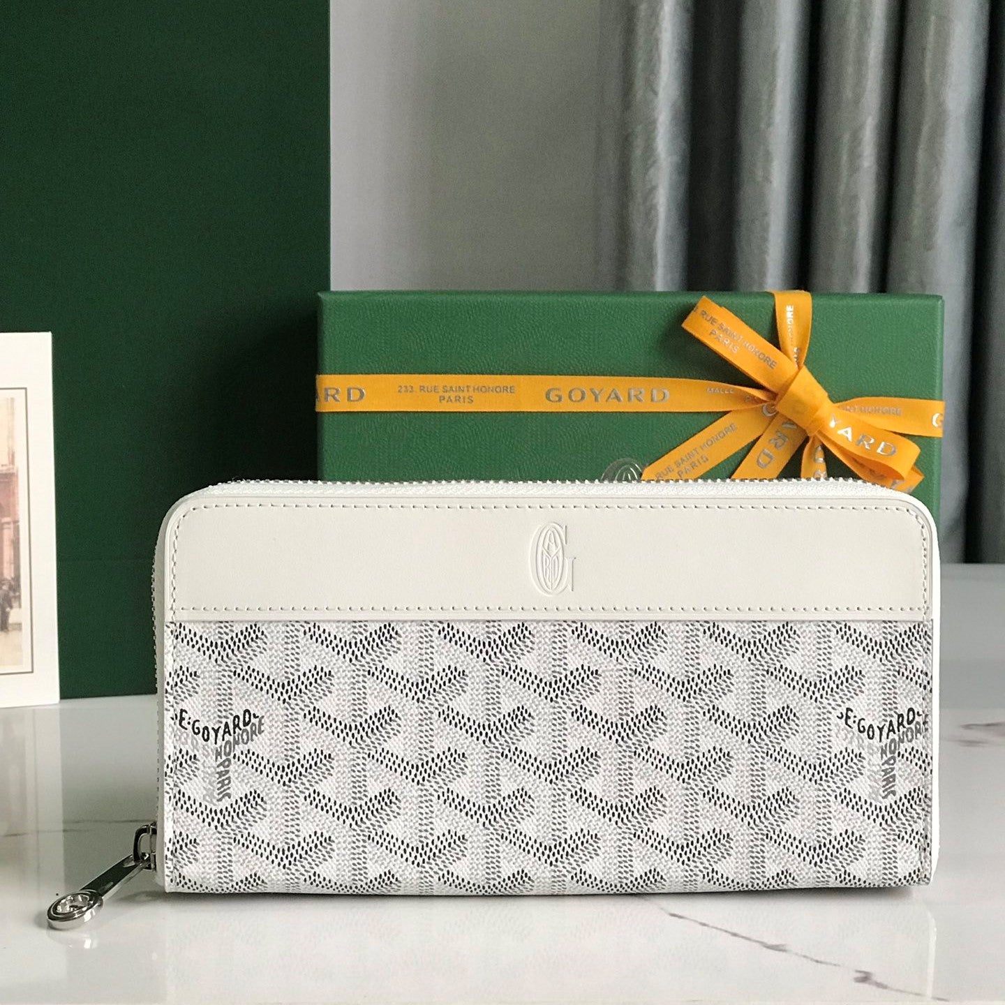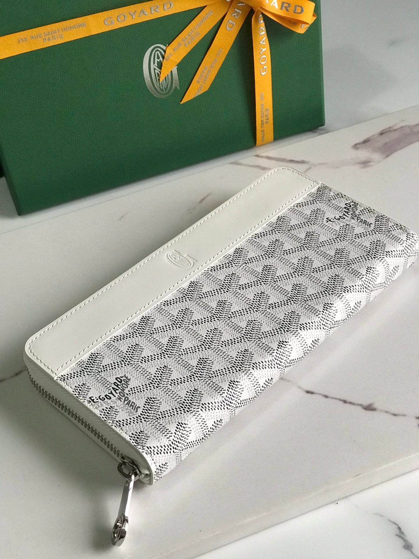 Goyard Matignon GM Wallet 20cm White Canvas & Calfskin