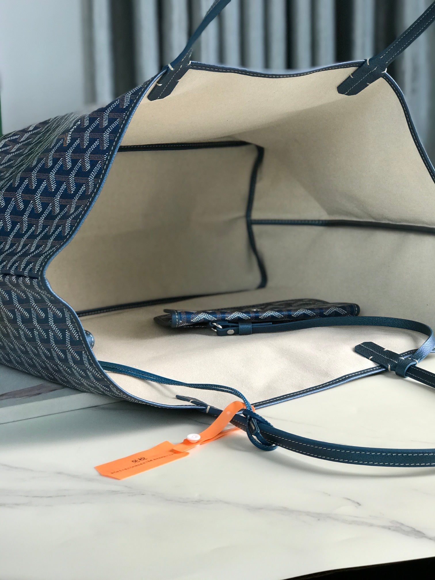Saint Louis GM Bag 40cm In Deep Blue Canvas Chevroches Calfskin