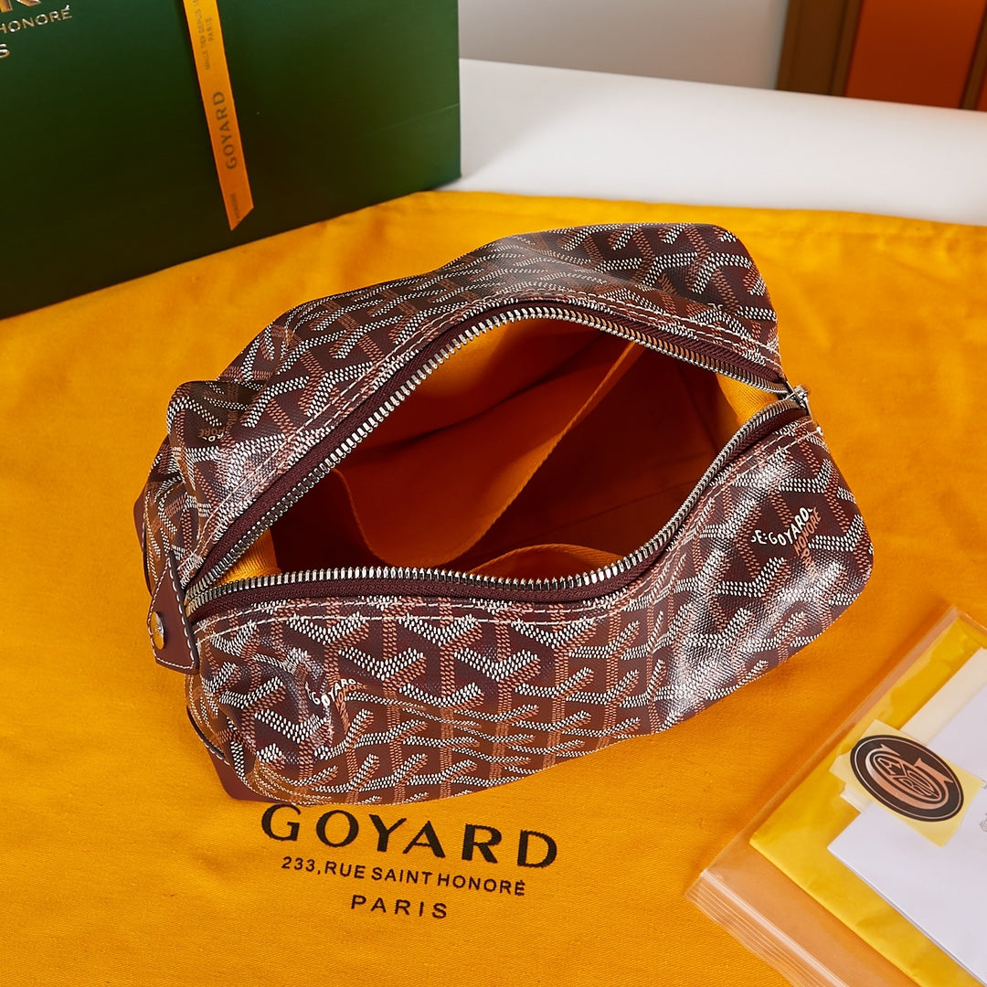 BOWLING TOILETRY BAG 25 IN RED ORANGE GOYARDINE CANVAS AND CALFSKIN