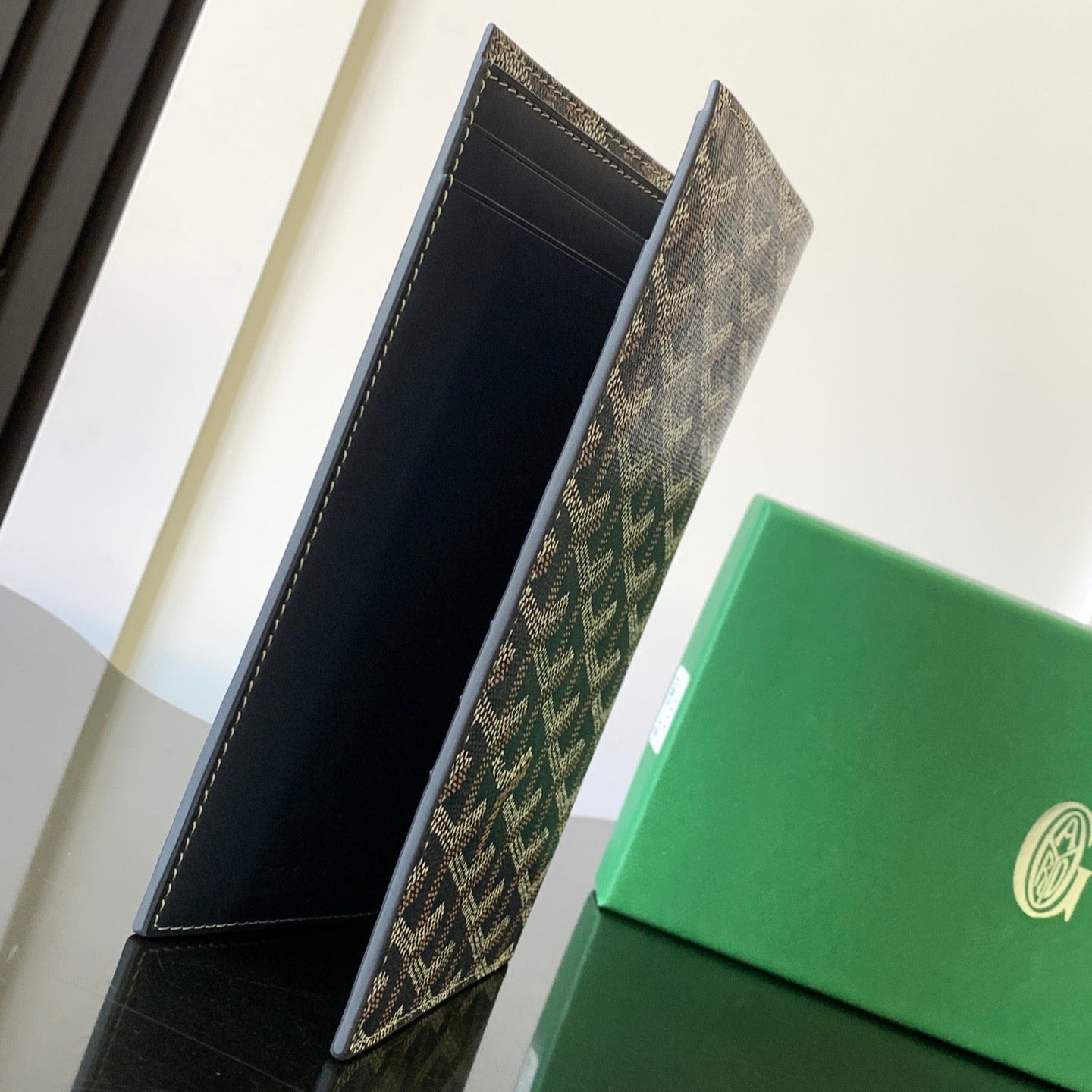 RICHELIEU CHECKBOOK WALLET 19 IN GREEN GOYARDINE CANVAS AND CALFSKIN