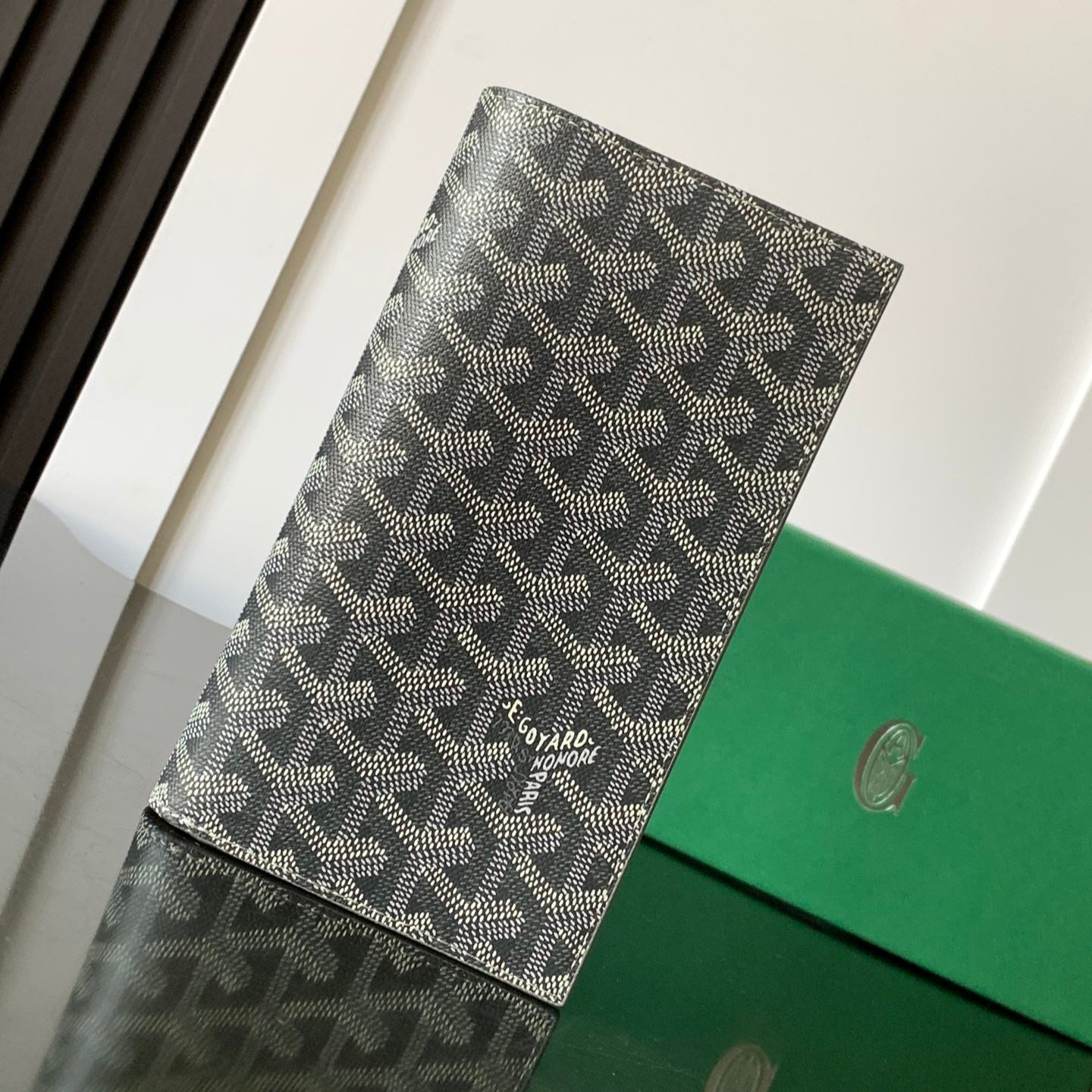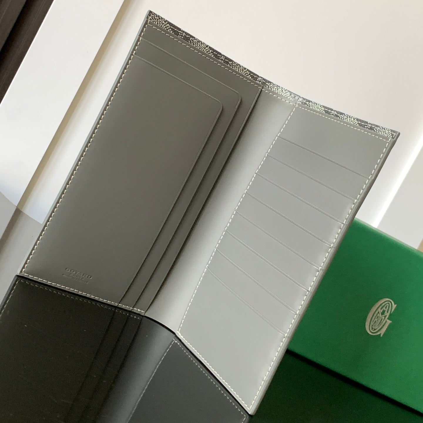 RICHELIEU CHECKBOOK WALLET 19 IN GREY GOYARDINE CANVAS AND CALFSKIN