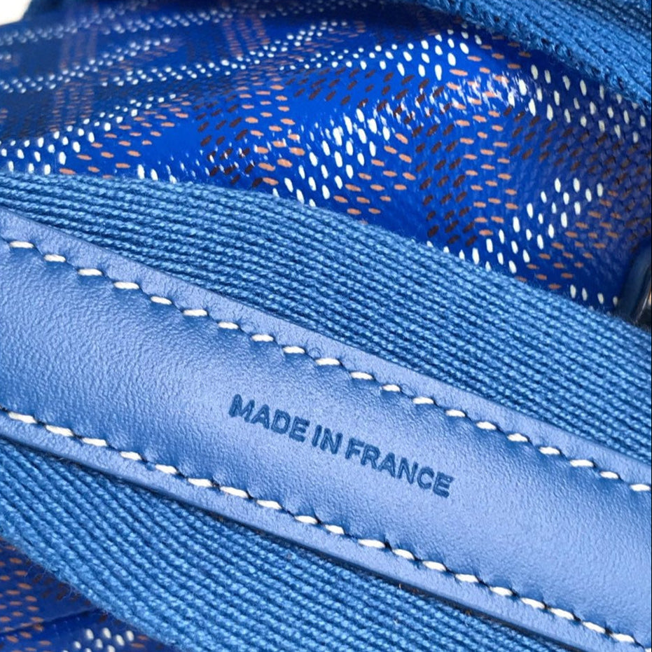 CASSETTE TRUNK BAG 21 IN BLUE GOYARDINE CANVAS & CLAMECY COWHIDE