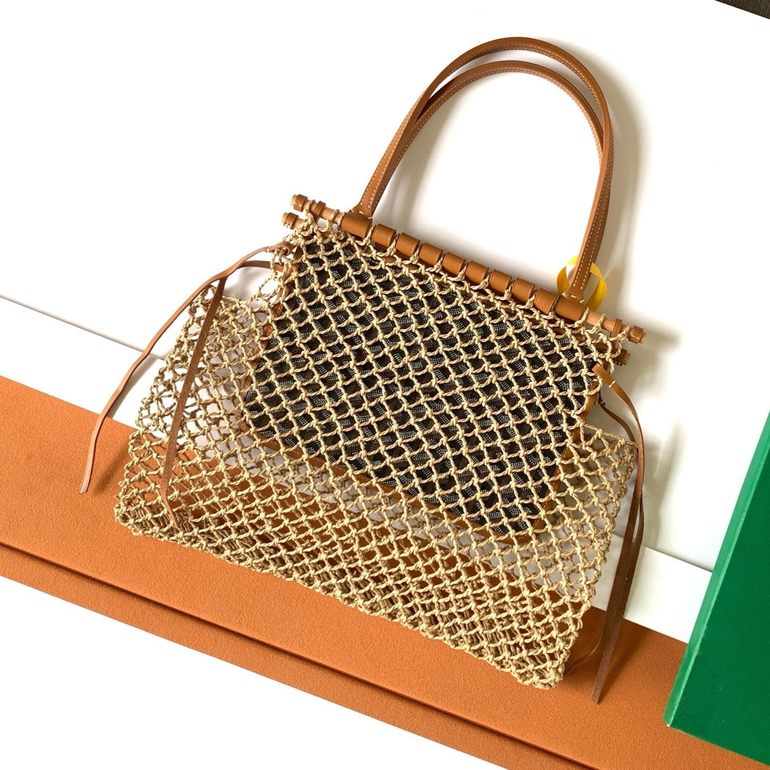 ALIGRE BAG 34 IN BROWN WOVEN RAFFIA AND CALFSKIN
