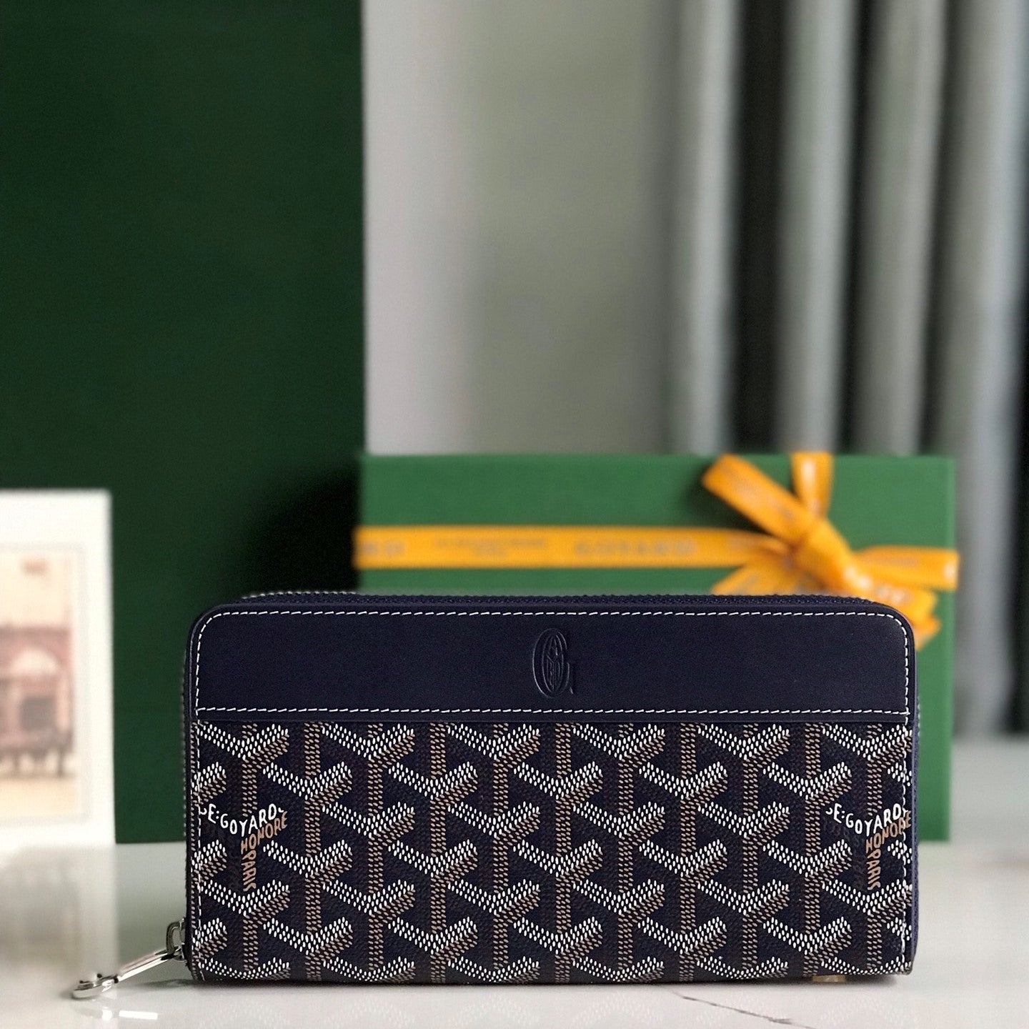 Goyard Matignon GM Wallet 20cm Navy Blue Canvas & Calfskin