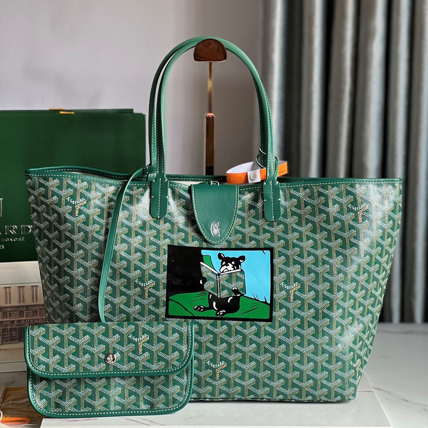 Goyard Hulot Saint Louis PM Bag 39cm Green Canvas & Calfskin