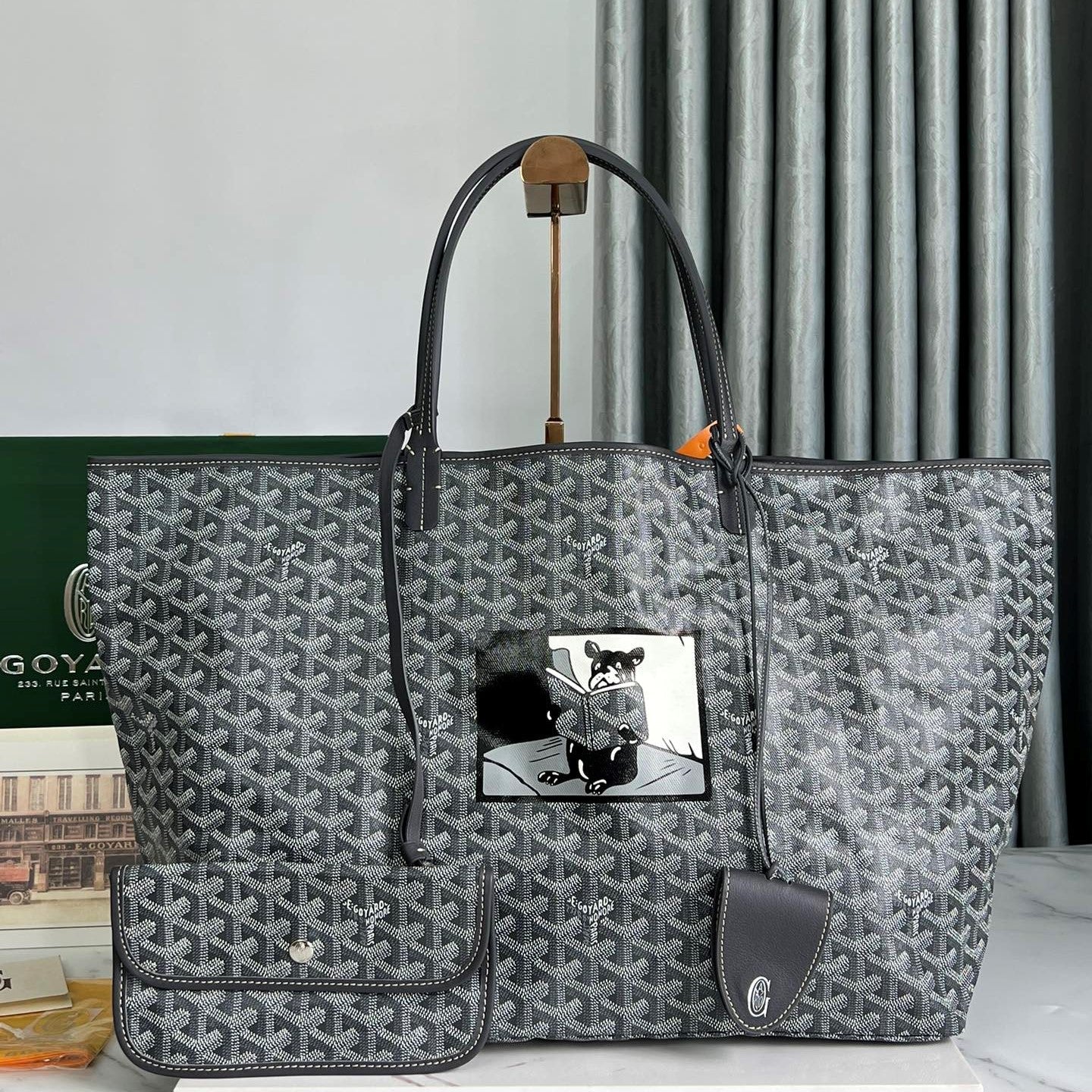 Goyard Hulot Saint Louis PM Bag 39cm Grey Canvas & Calfskin