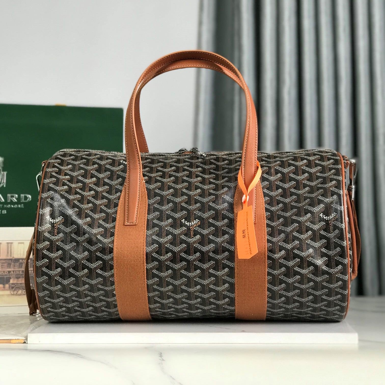 Goyard Barrel 40 Sports Bag Black Tan Canvas & Calfskin