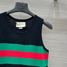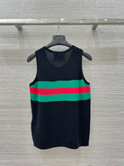 Gucci 25 Embroidered Jacquard Mesh Vest Top Black Tencel