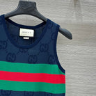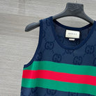Gucci 25 Embroidered Jacquard Mesh Vest Top Navy Blue Tencel