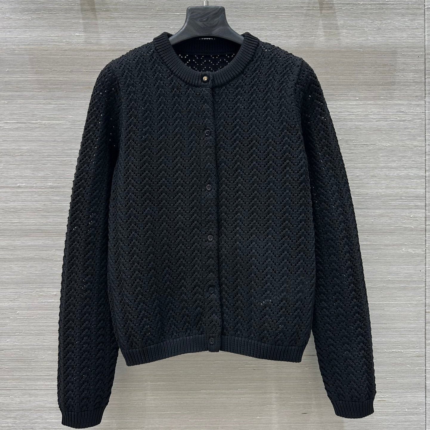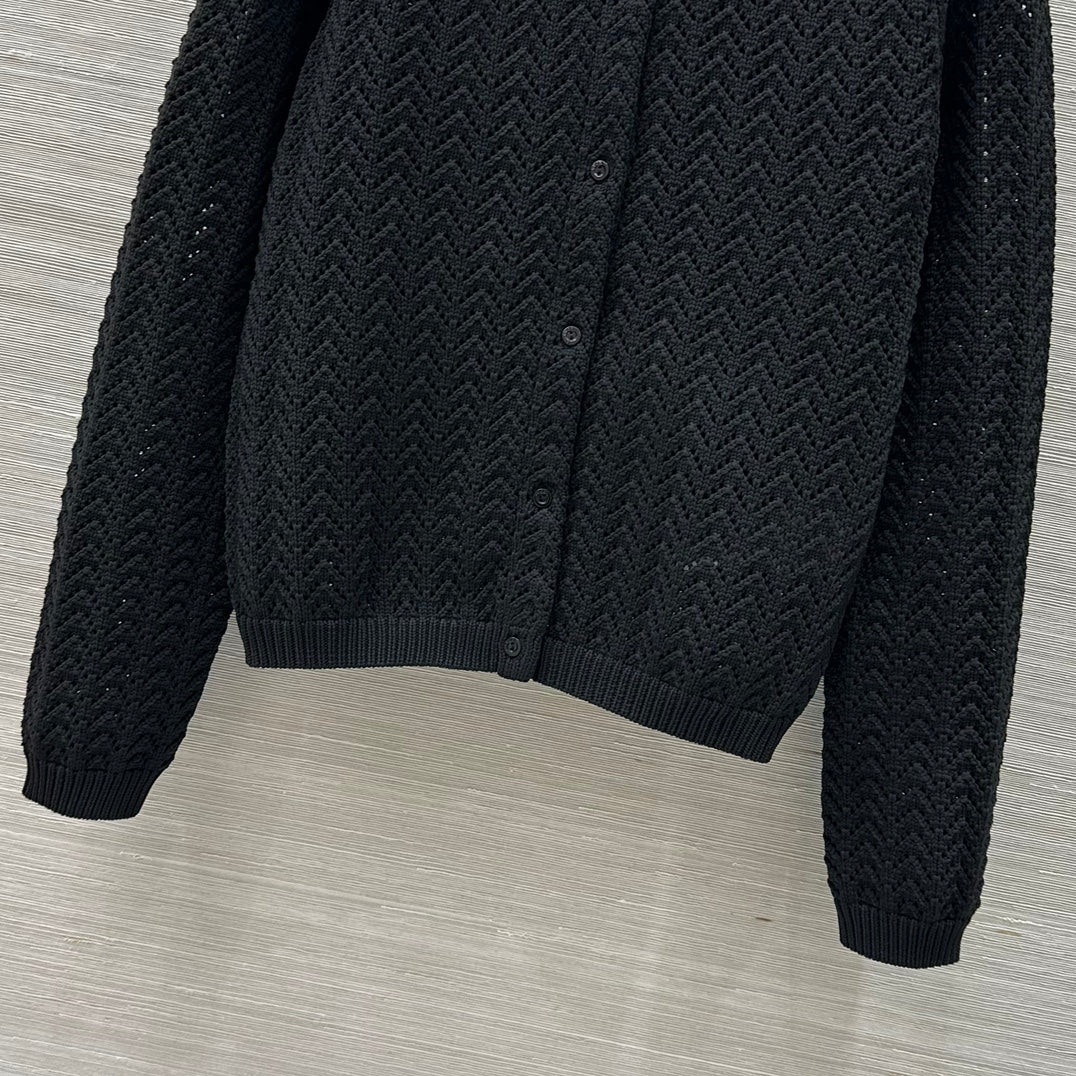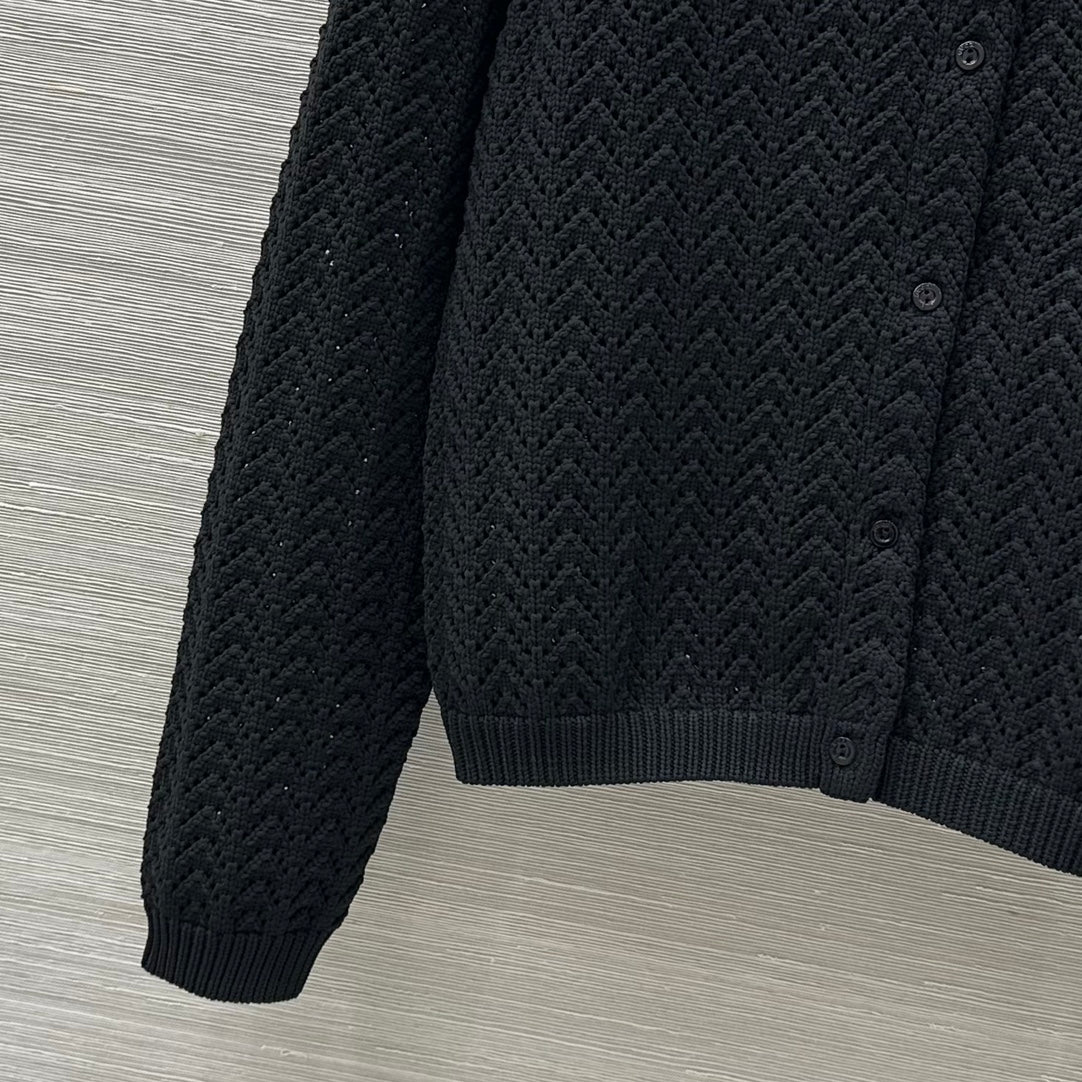 Gucci 25 Hollow Knitted Cardigan Black Polyester Fiber