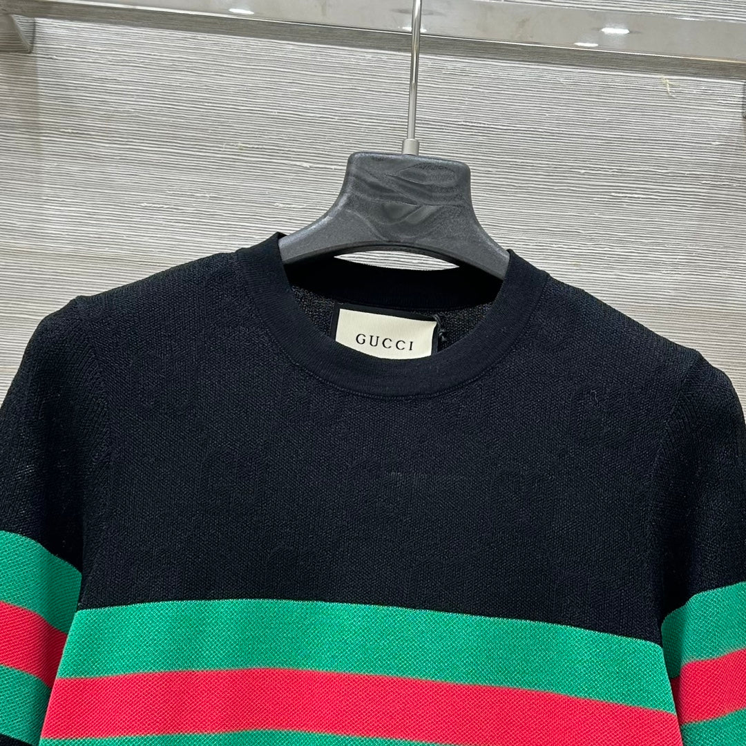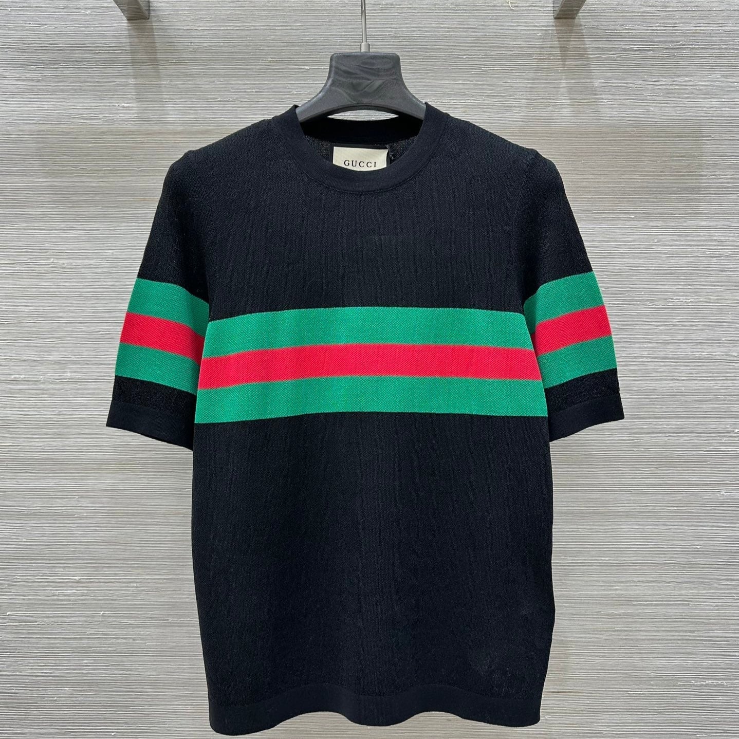 Gucci 25 Mesh Short-sleeved Top Black Tencel