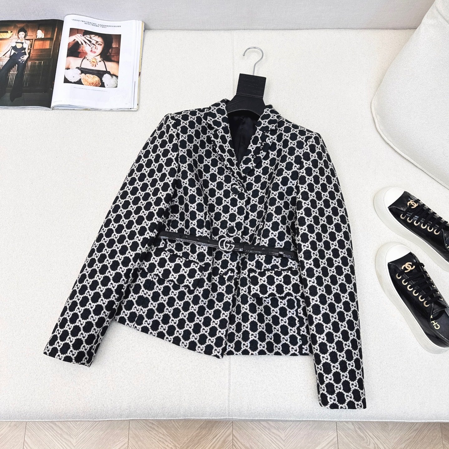 Gucci 25 Patterned Suit Black Jacquard Fabric