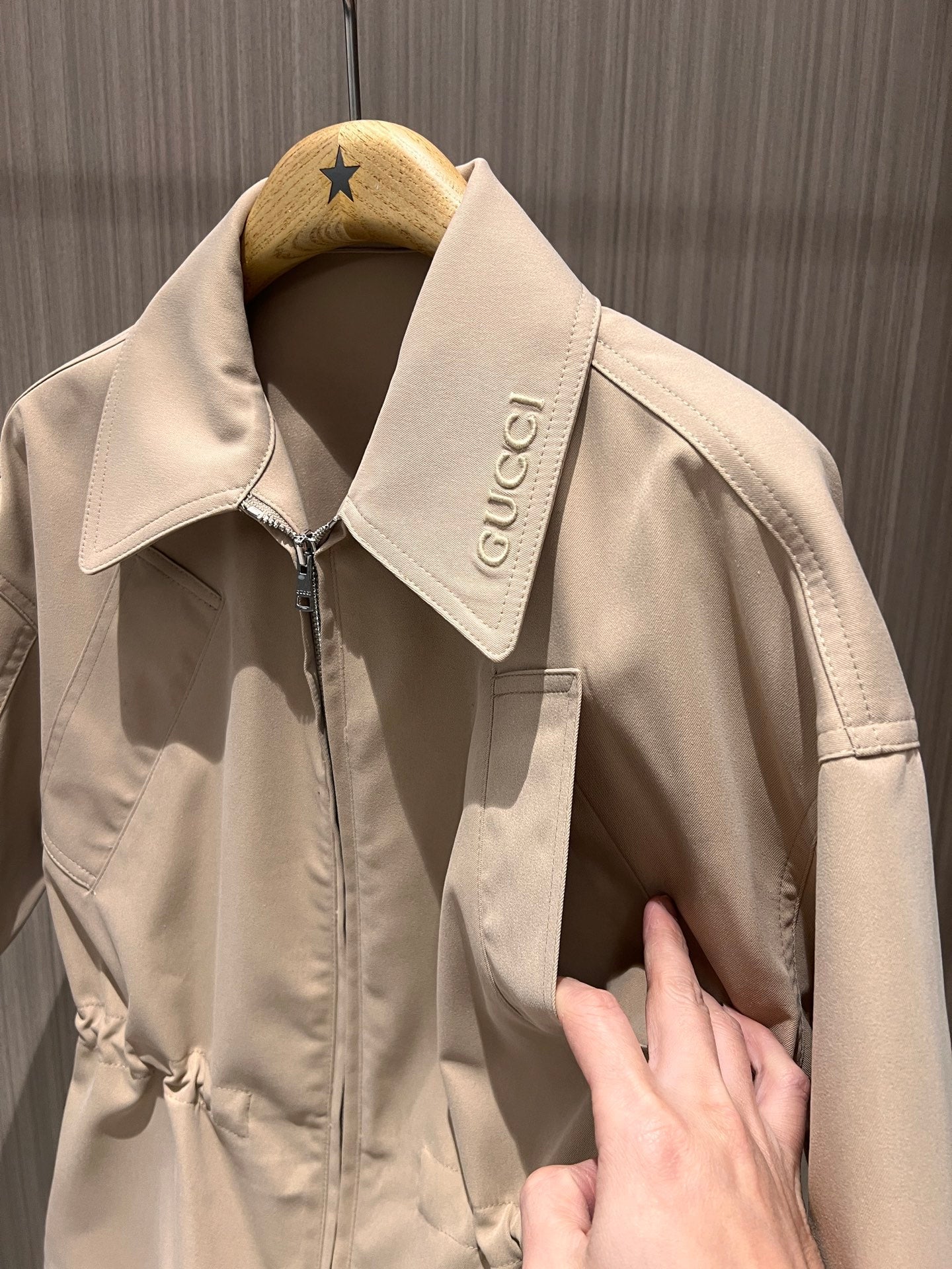 Gucci Short-sleeved Jacket Top Beige Polyester Fiber