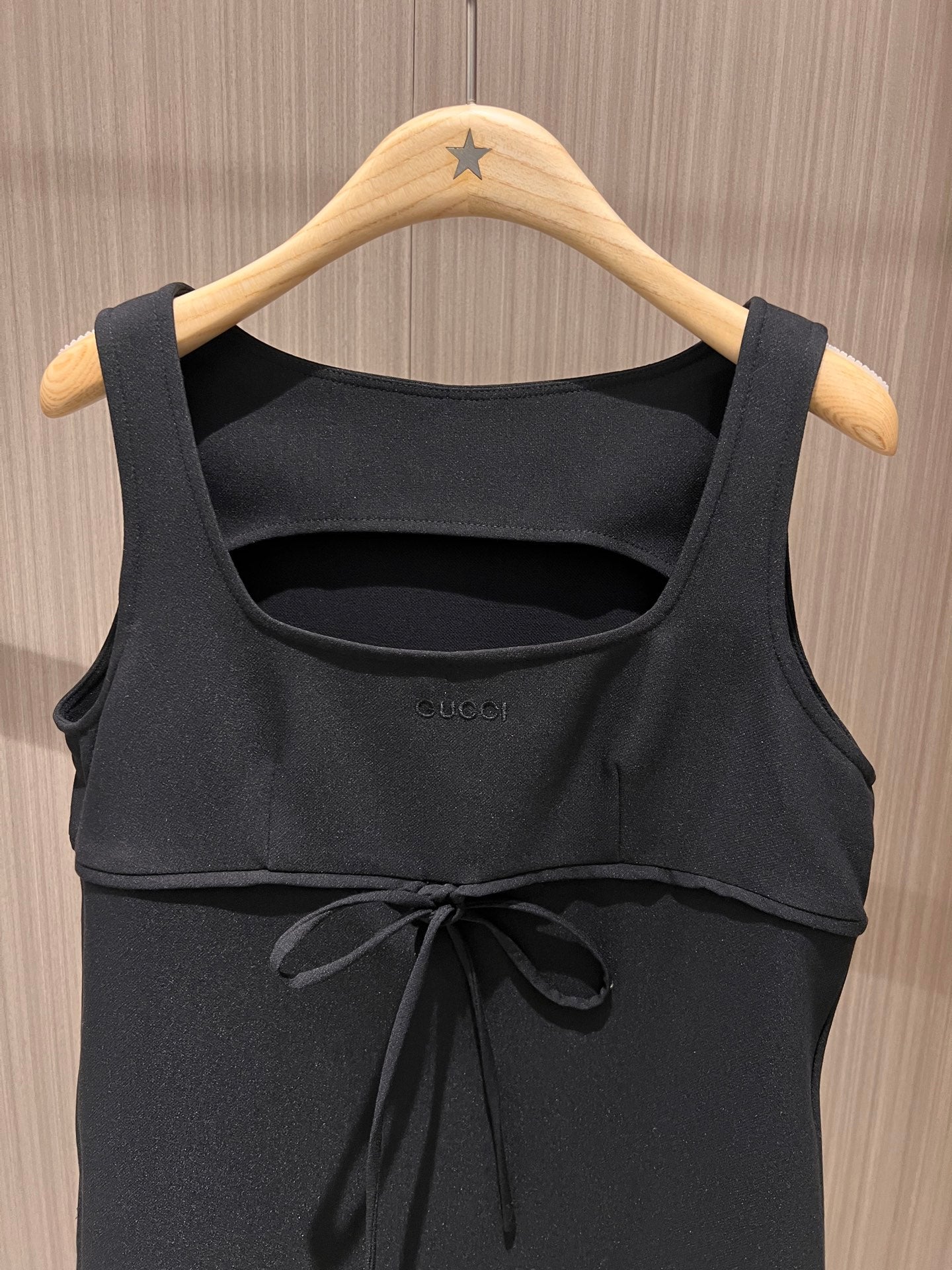 Gucci Vest Dress With Lace-up Bowknot Black Polyester Fiber