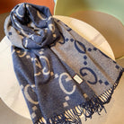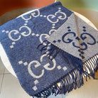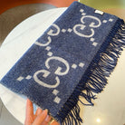 GG JACQUARD PATTERN KNIT SCARF 195 CM WITH TASSELS NAVY BLUE 403747
