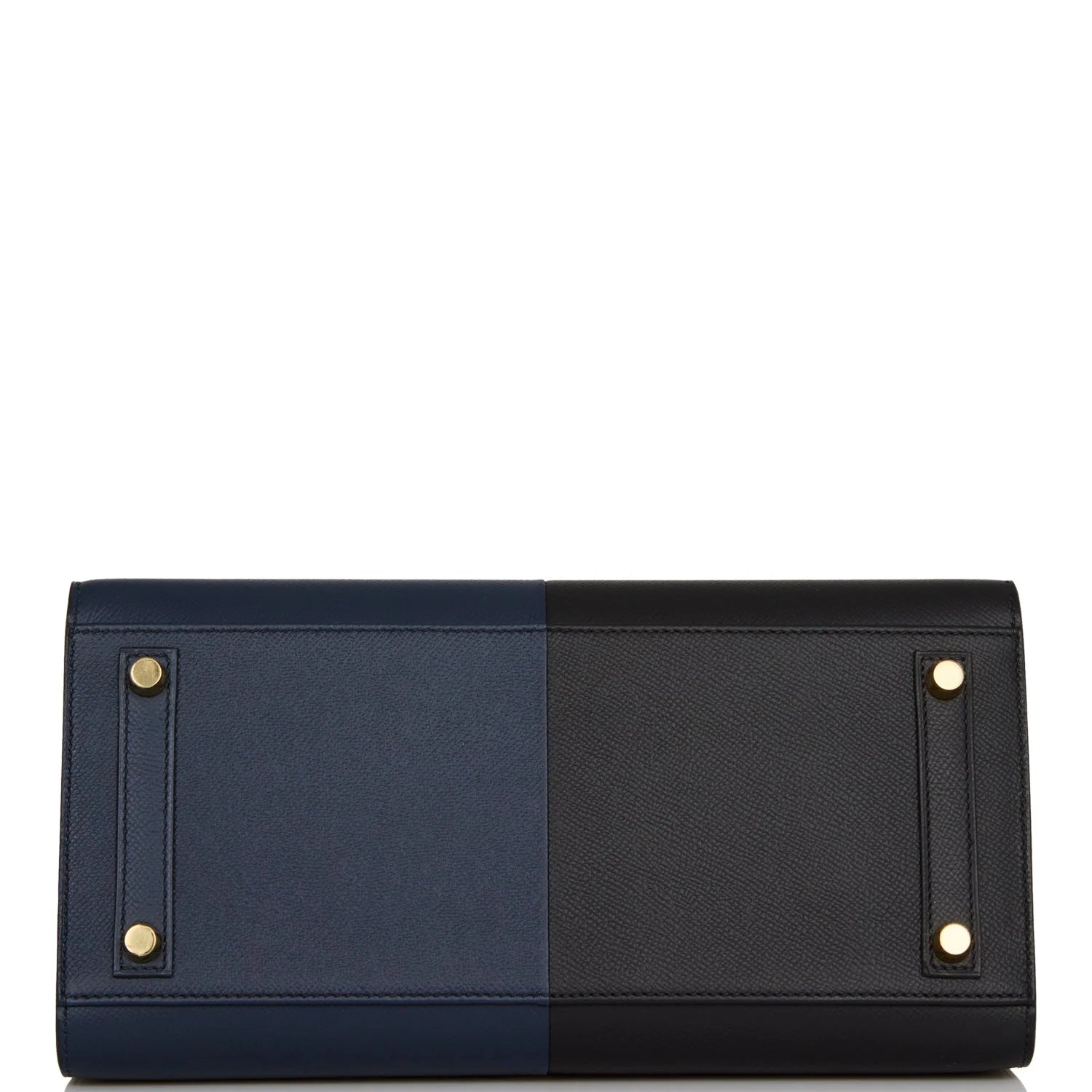 HM BIRKIN SELLIER CASAQUE 32cm BLACK AND BLUE TOGO LEATHER GOLD HARDWARE