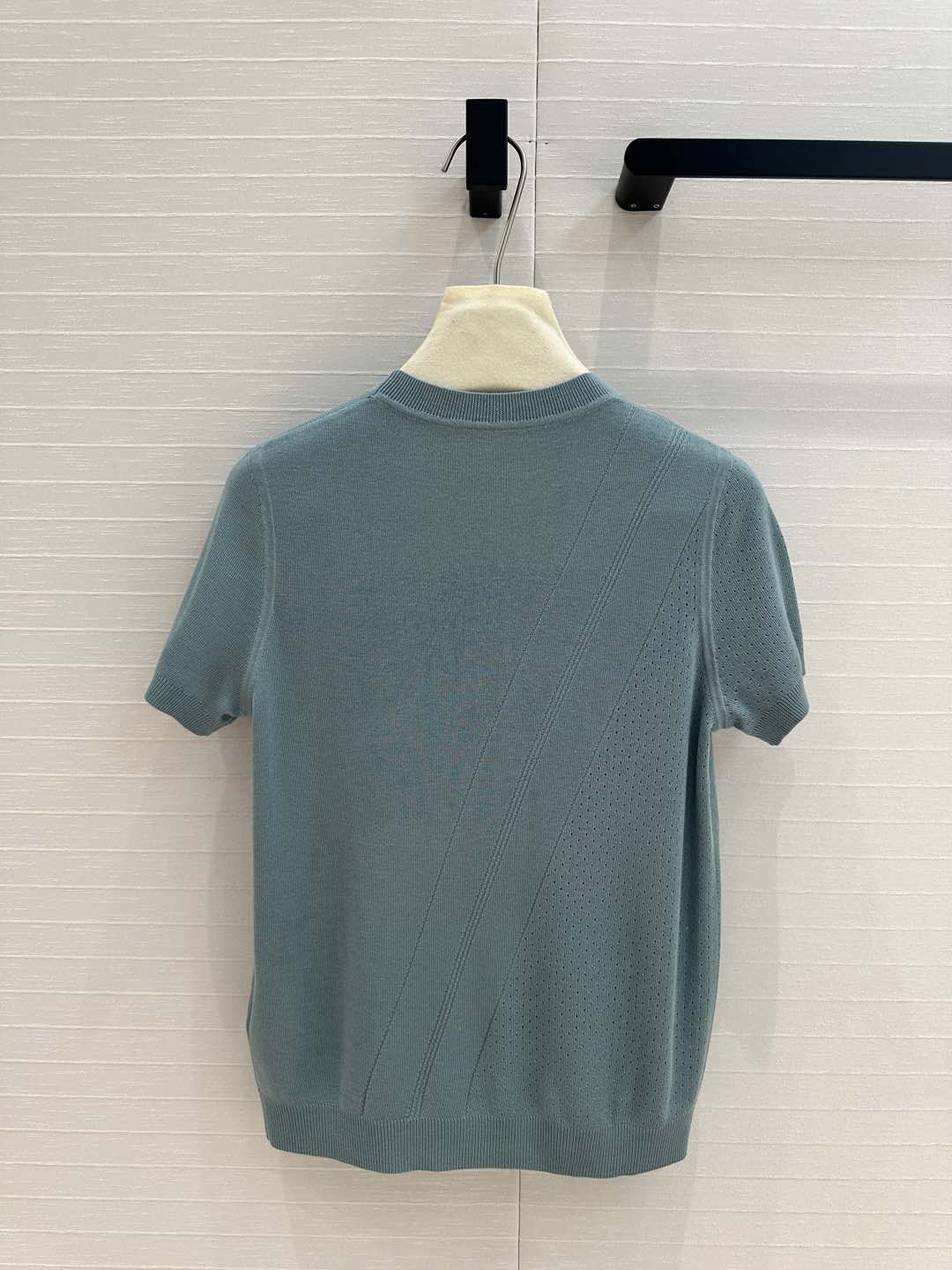 Hm 25 Hollow Knit Short-Sleeve Top Blue Green Tencel Cotton