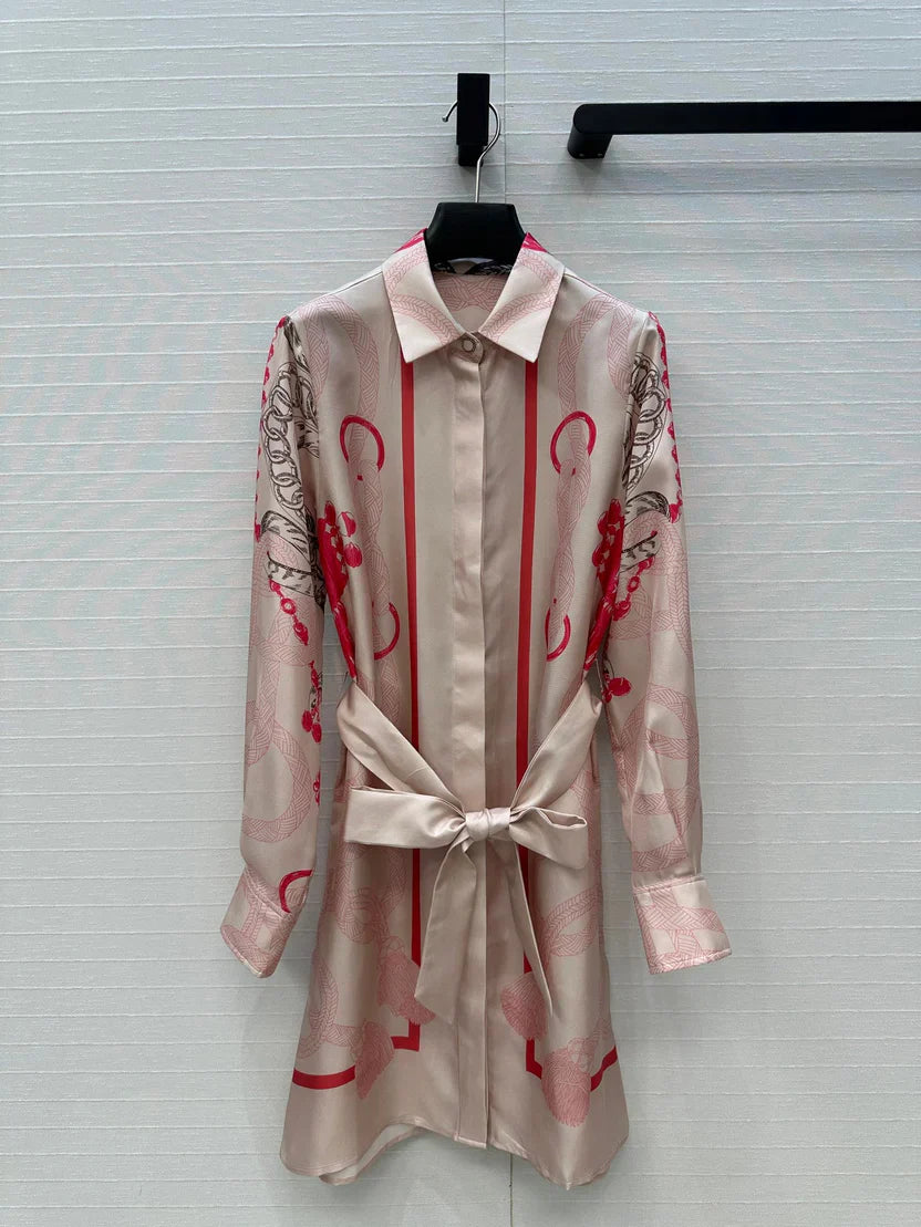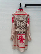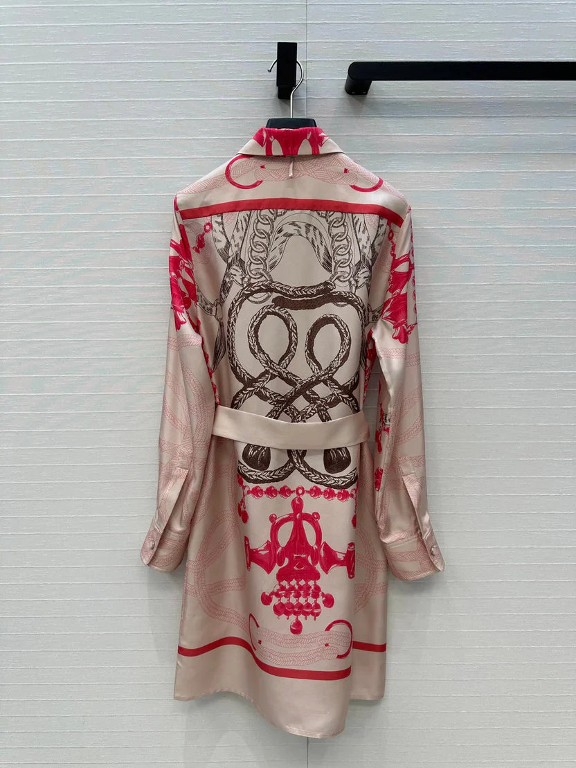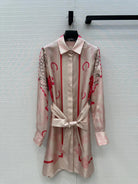 HM 25S Palefroi Remix Long Sleeve Dress Graphic Print in Pink Silk