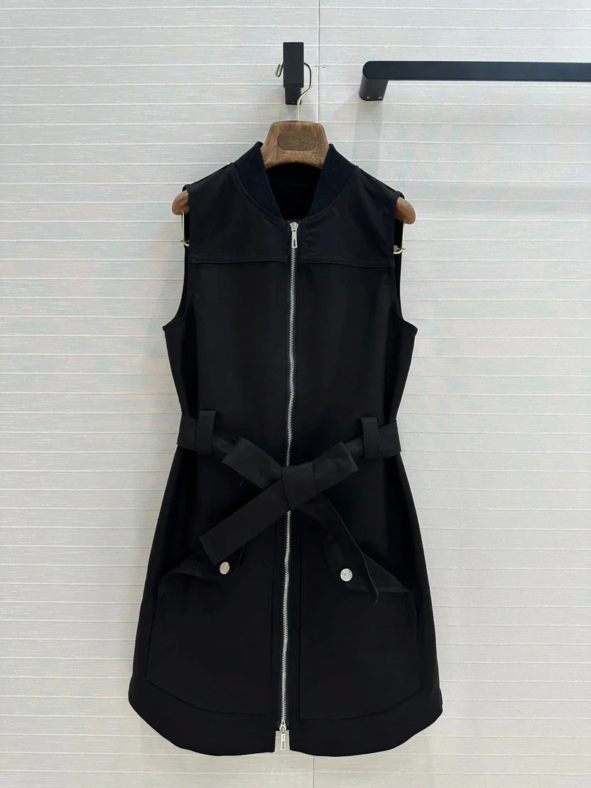 HM Majia Zipped Sleeveless Dress in Black Cotton