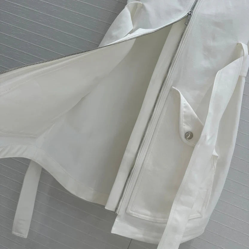 HM Majia Zipped Sleeveless Dress in White Cotton