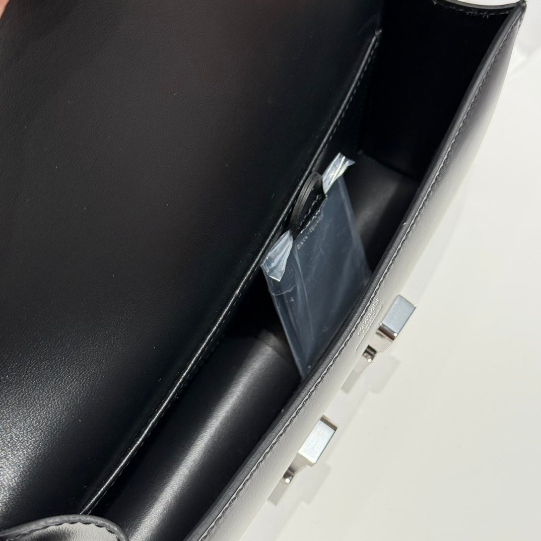 HM Constance Elan 24cm Bag Black Box Calfskin Silver Hardware