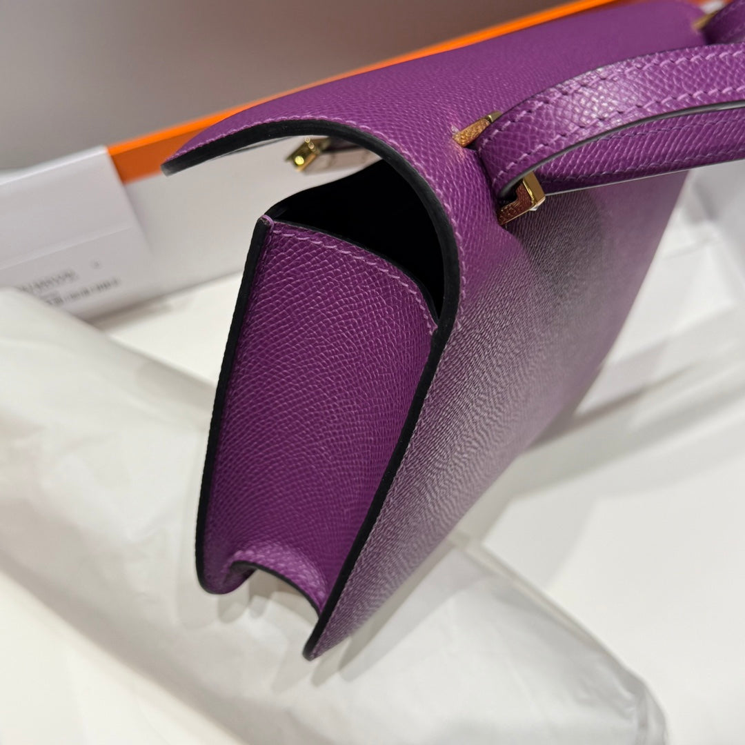 HM Constance Elan 24cm Bag Purple Epsom Leather Gold Hardware