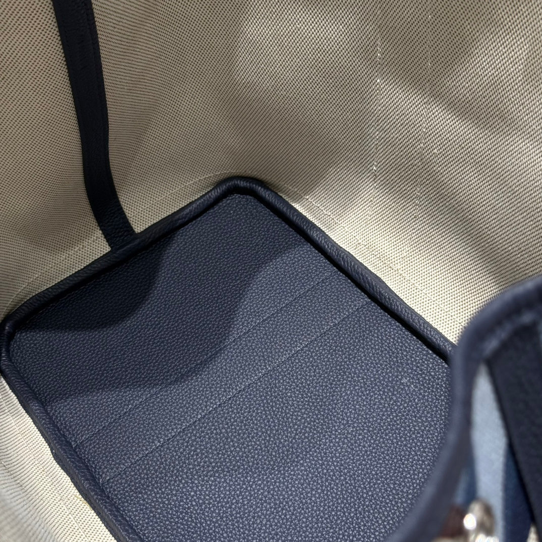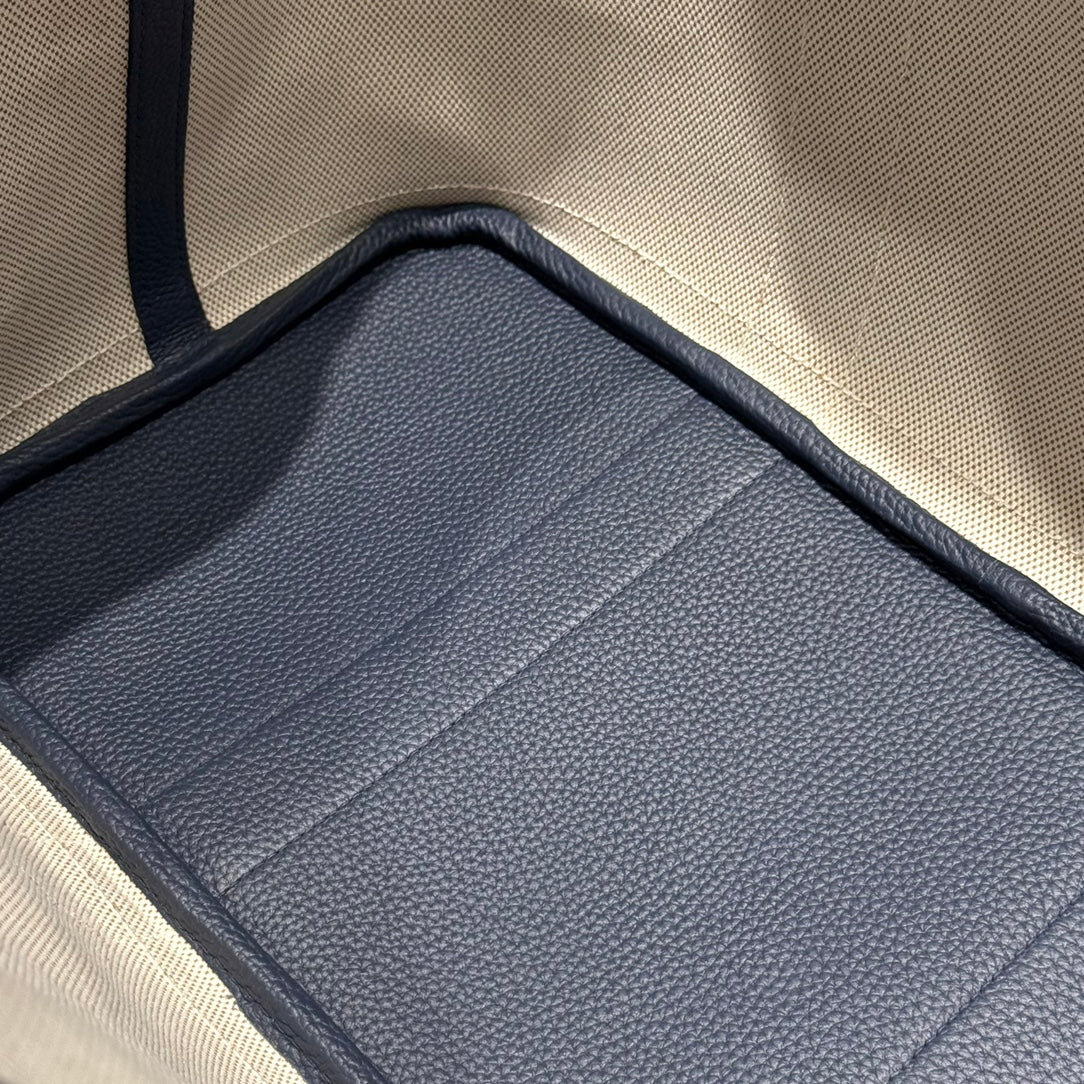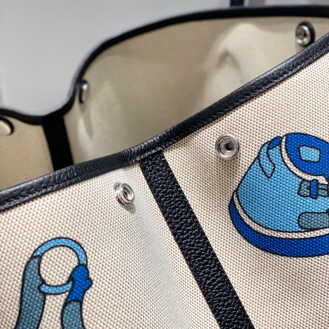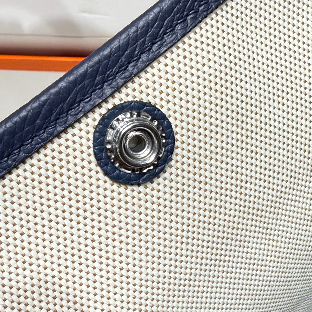 HM Garden Party 30cm Bag Blue Togo Cream Canvas
