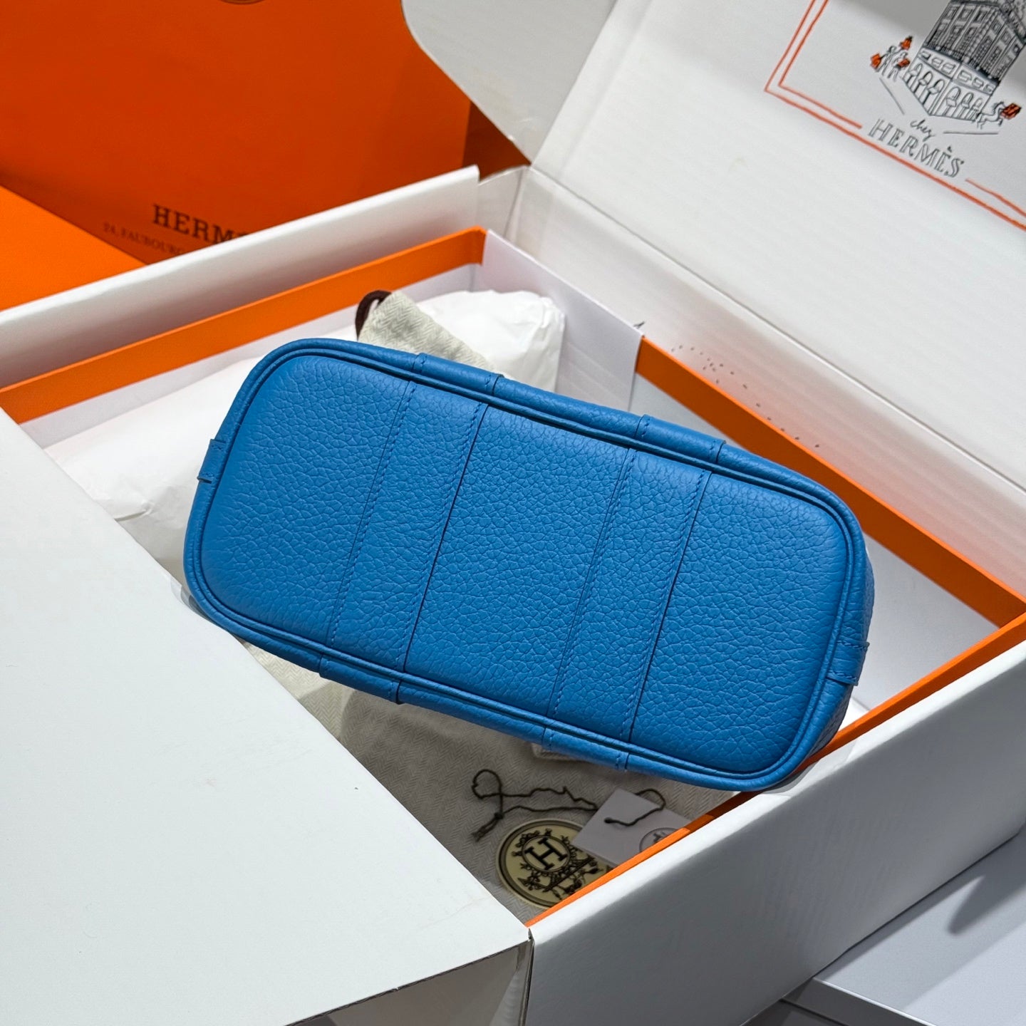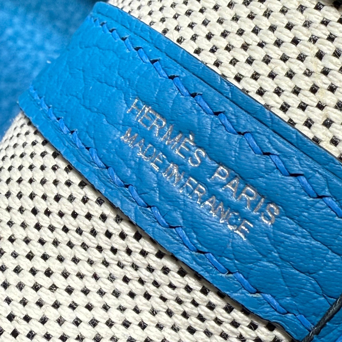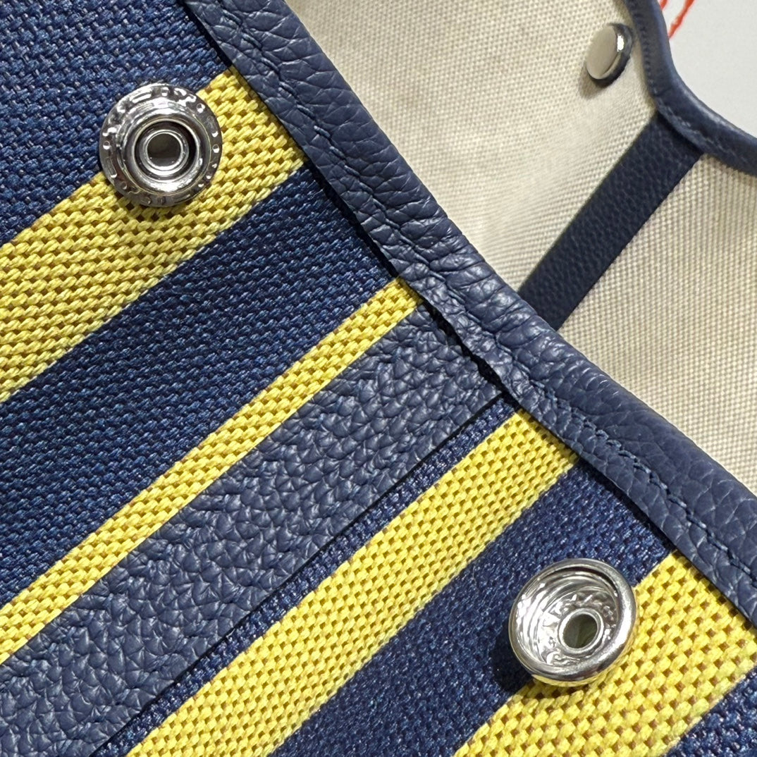 HM Garden Party 30cm Bag Blue Togo Cream Canvas
