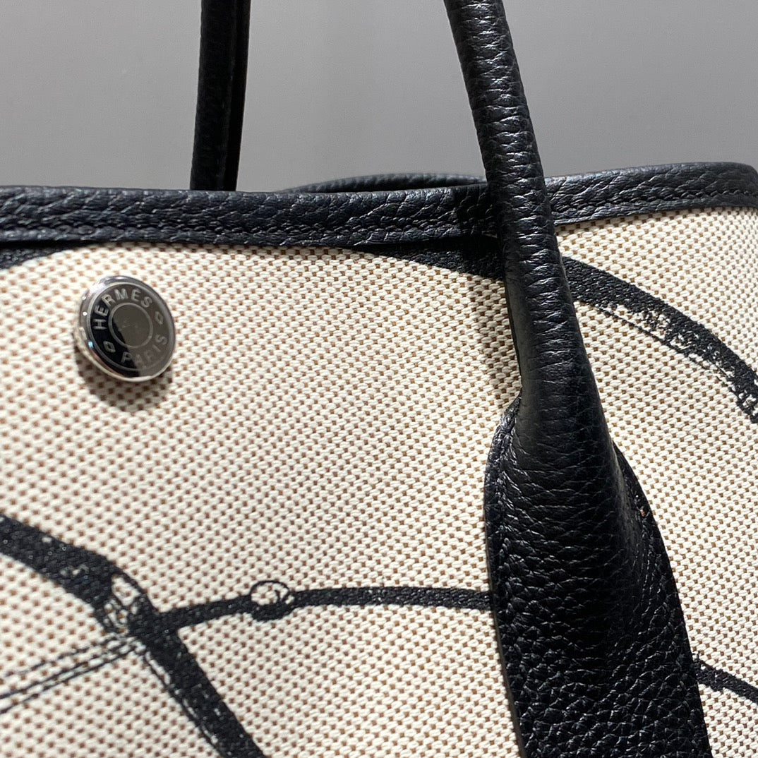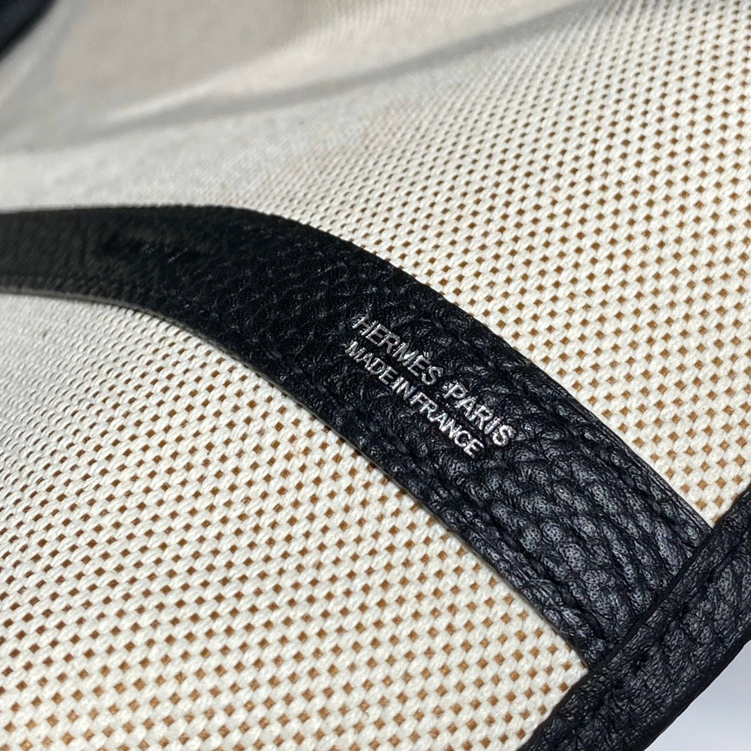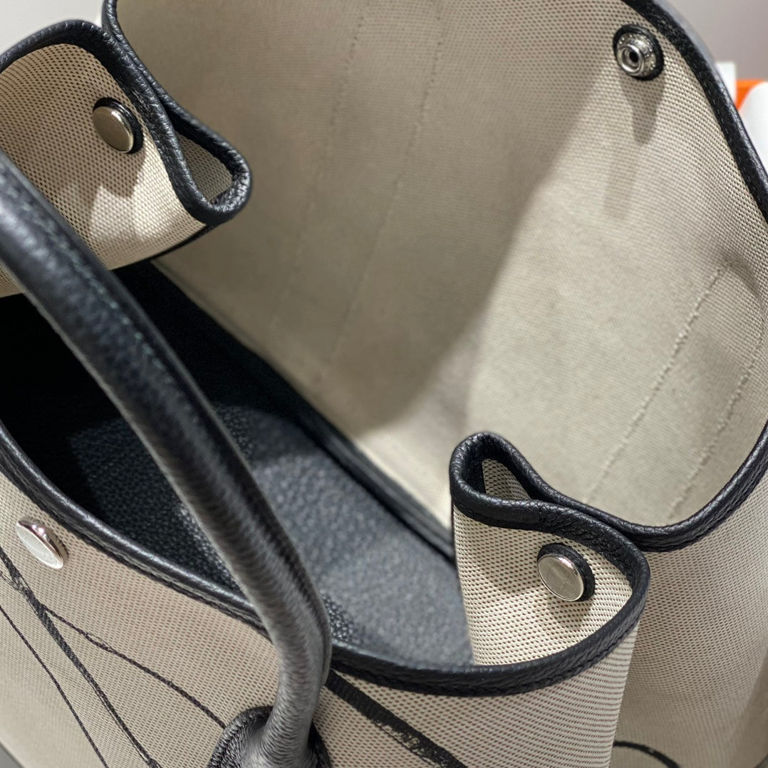 HM Garden Party 30cm Bag Black Togo Light Beige Canvas