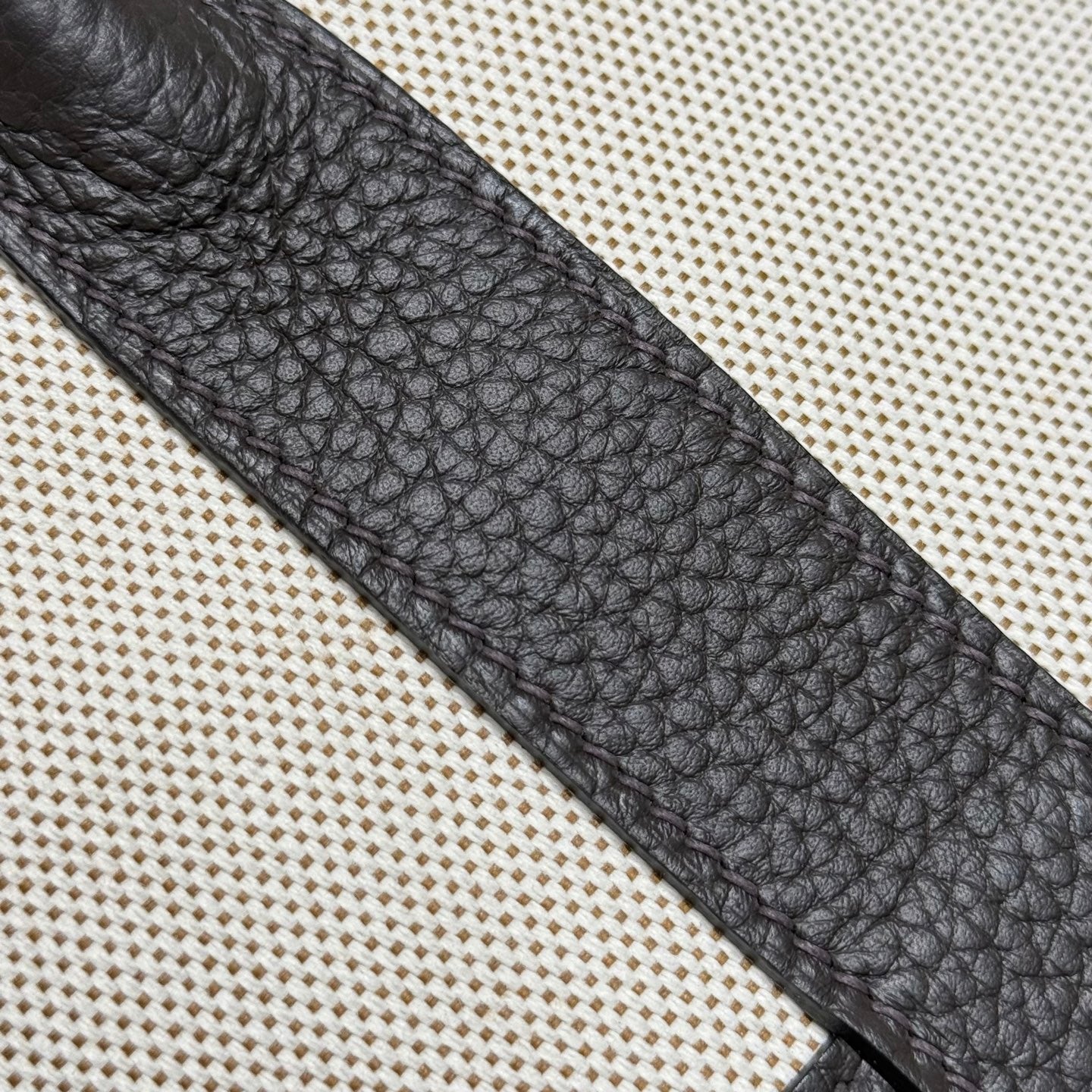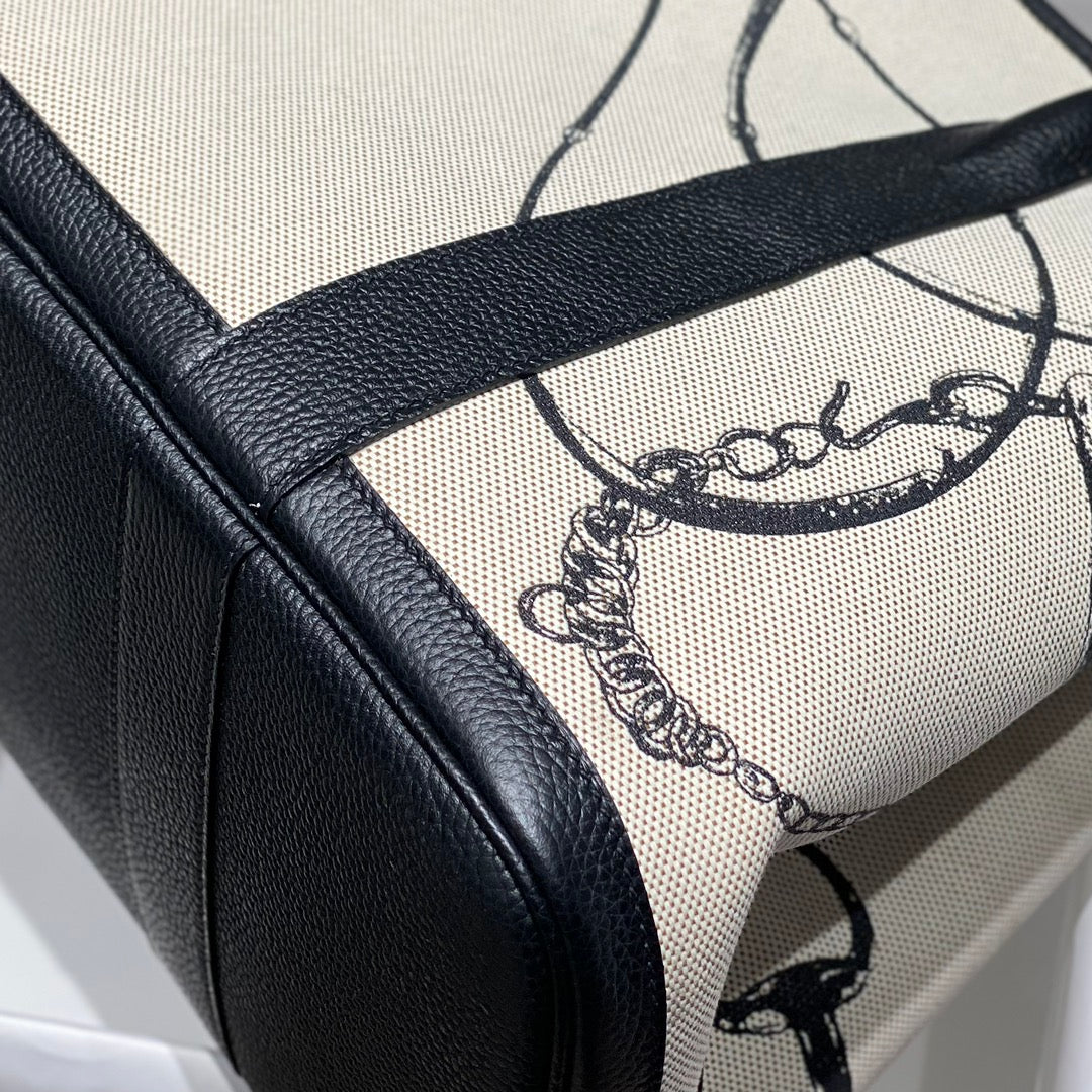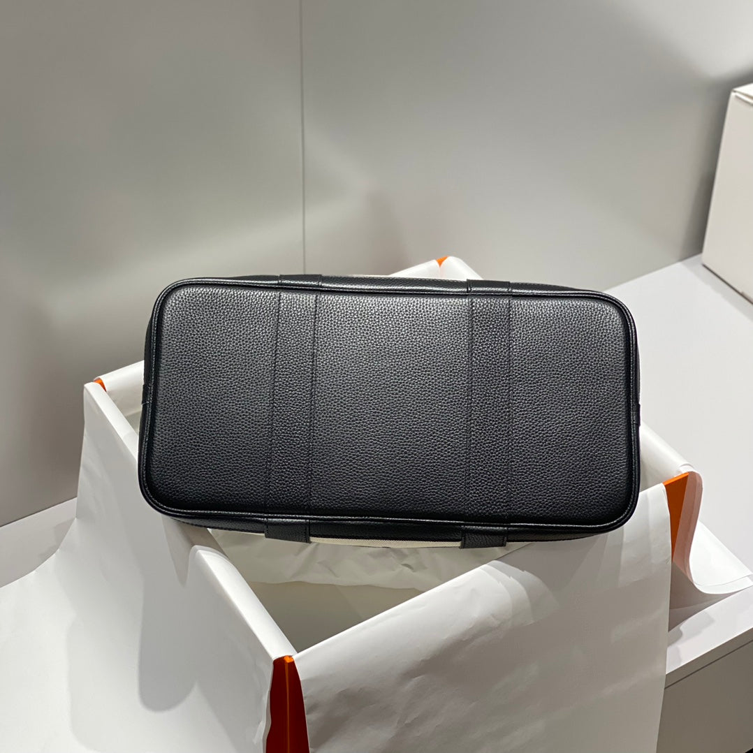 HM Garden Party 30cm Bag Black Togo Light Beige Canvas